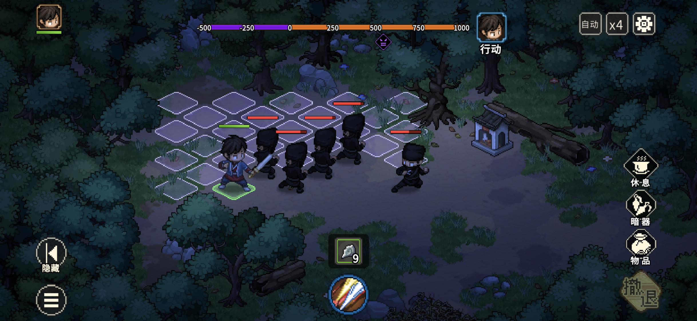 鉴于很多萌新反馈很难打,这里说几个重点,首先不要贪刀!贪刀是指2动3动时为了收割残血或者多打几个人导致没落位在边缘,我们一回合3动,1动打人尽可能多打几个,第2动是重中之重!要看落位来打人,不求多打几个人但是落位一定要在边缘,最起码要齐平最边缘的敌人,且落位之后要有4的移动空间,简单来说就是旁边不能是墙壁,要有空地!三动跑路到第4格!开局选剑最主要的原因就是不用贴脸打人,隔一个格子就不会被反击!打单个目标的尽可能隔开来打!如果运气不好中间被反击了一次,就尽量怂一点吧,按人头点杀也是可以的