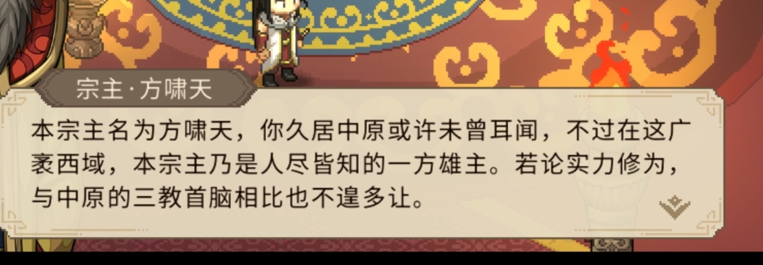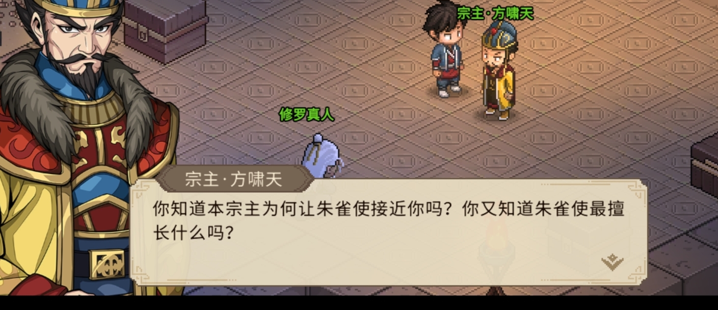 修罗真人:三教掌门级,可能是前朝人,不知道巅峰状态是不是年轻时候。人称老祖宗,柴王手下最大战力底牌,已知十煞君不输一般门派掌门,修罗真人暂时就算他不输顶级门派掌门。和闭关前方啸天对标。尽管游戏内表现一言难尽,客栈的时候逼格和大BOSS似的,后面直接成,被方啸天一巴掌打退跑路,虽然前面和冷皮帮战斗过,但这逼格实在立不住。总感觉修罗真人最初设定是对标扶摇子的,后来改成掌门水平了