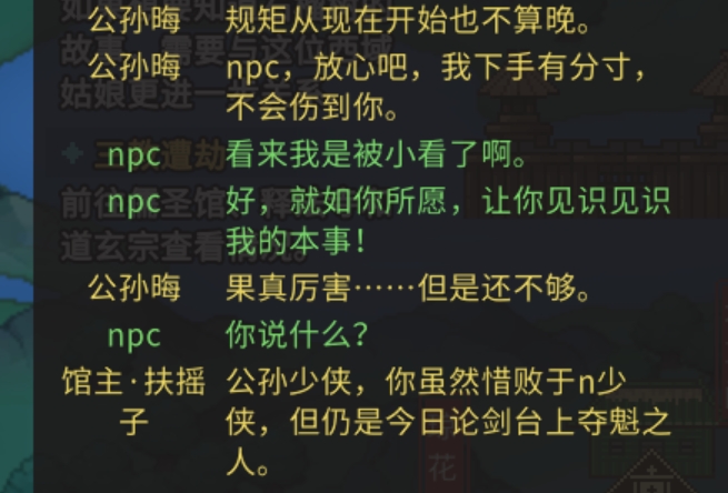 另外九流门邪线最后主角和秦会之对战扶摇子燕歌行,战胜后触发结局,在这一阶段似乎也可以当做超过扶摇子,不过没有合理的成长剧情,只是为了游戏性让玩家能够战胜扶摇子,暂定九流邪线结局主角﹤蓬莱归来合成宝鉴主角。还有九流门浮屠寺事件,如果三教掌门有死亡,则变成扶摇子和剩下掌门对战铁面人任意人数,不过这个更像是游戏性设计。