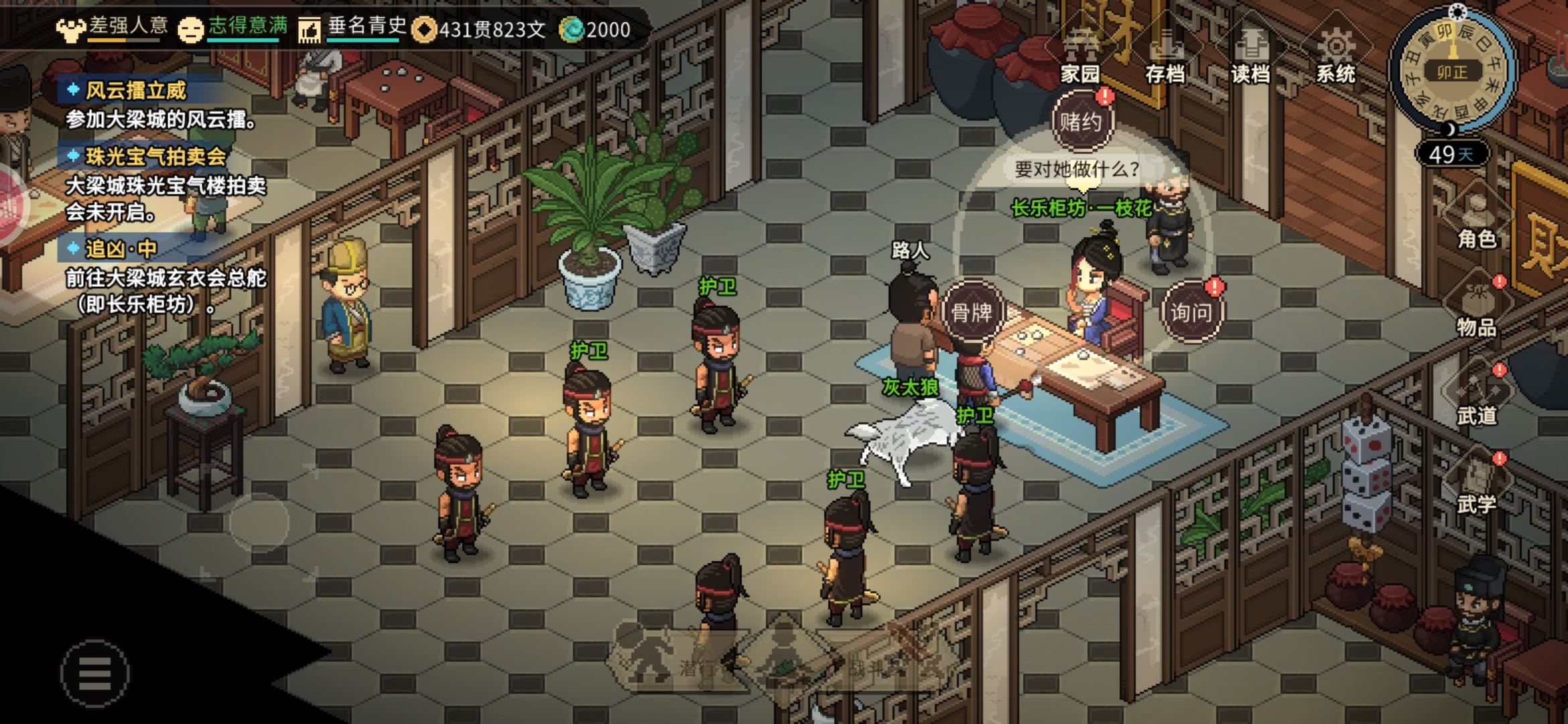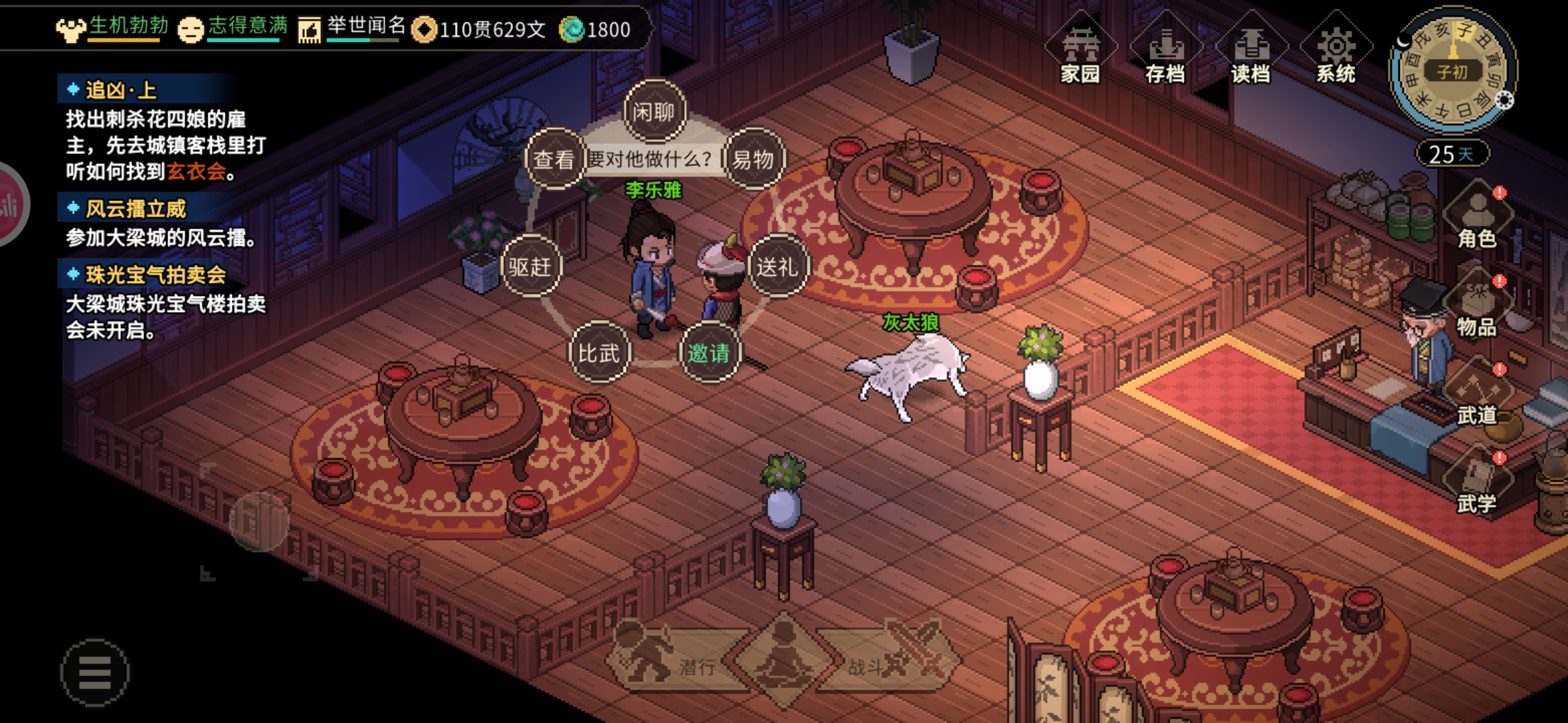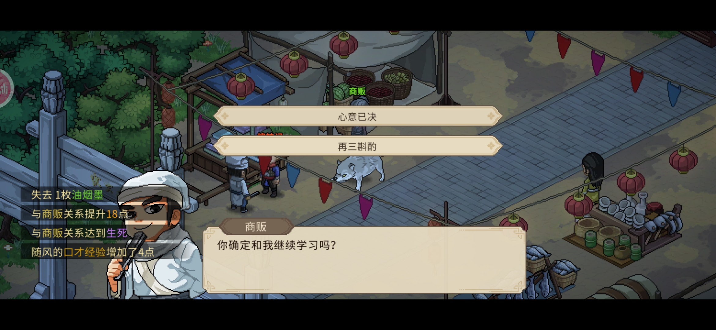 打完继续过一遍日常,去夜磨坊学艺至经商登峰造极(沈无欺也可以学,给的很多,别忘了)