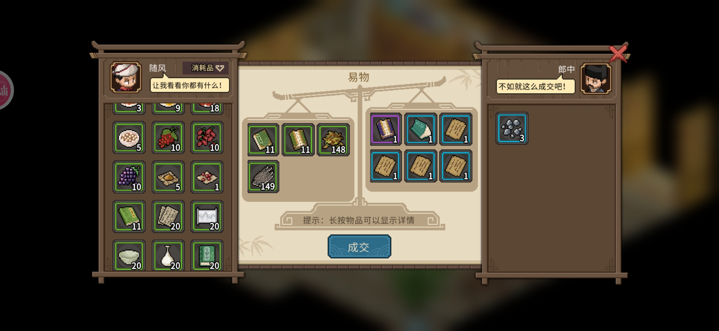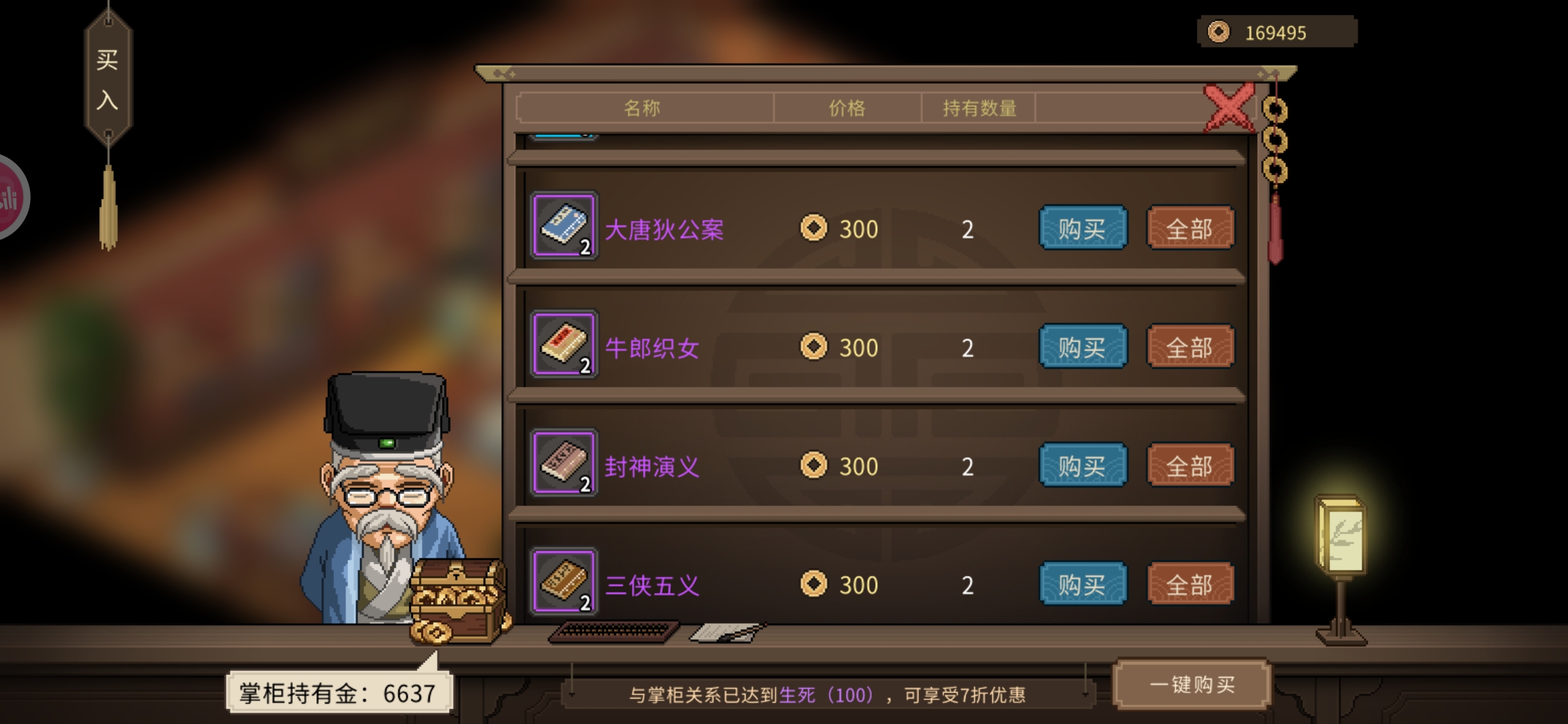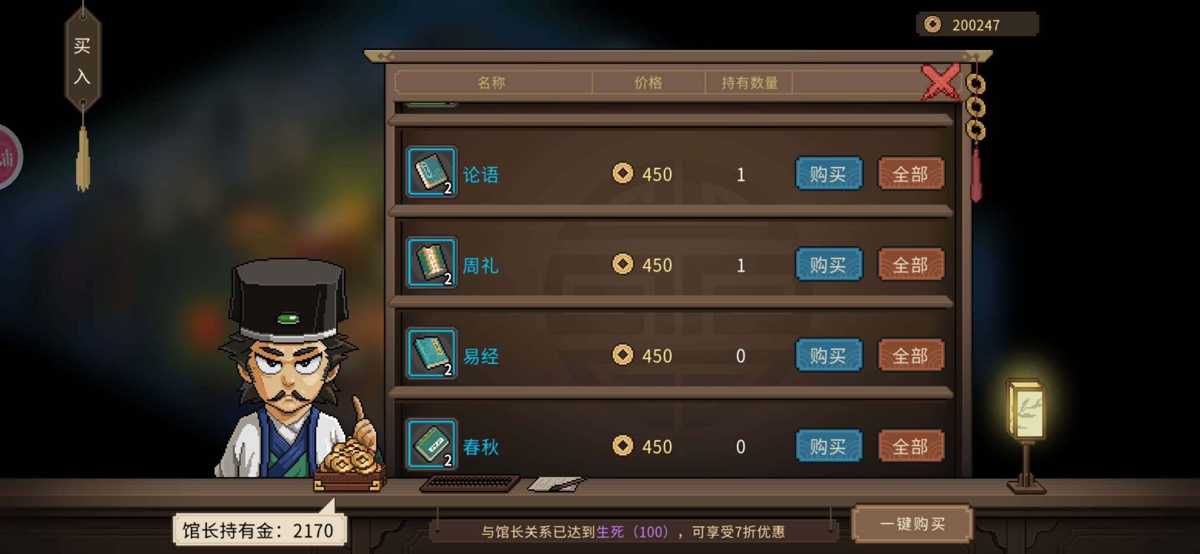去大梁找馆长买点六艺书,以后易物除了碎银就可以用六艺书去易物