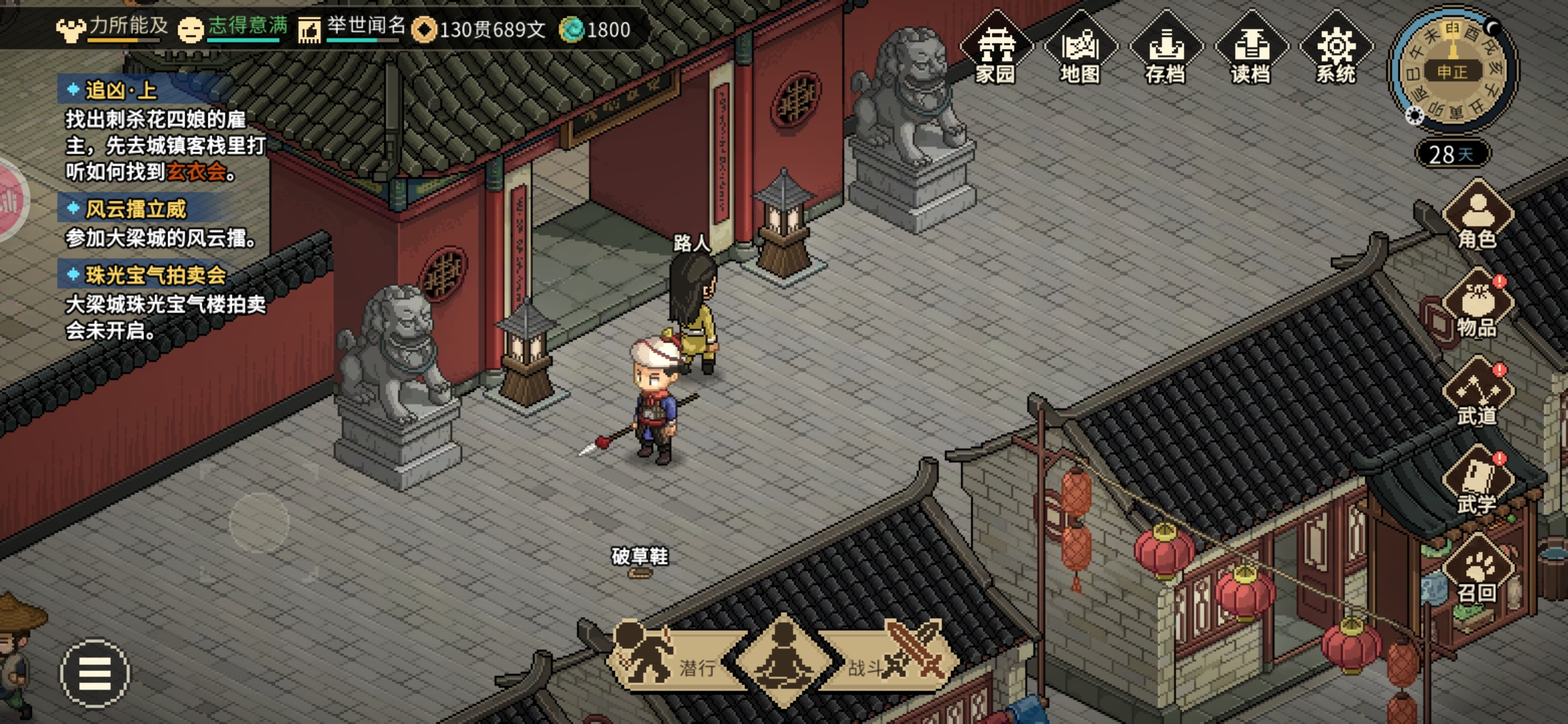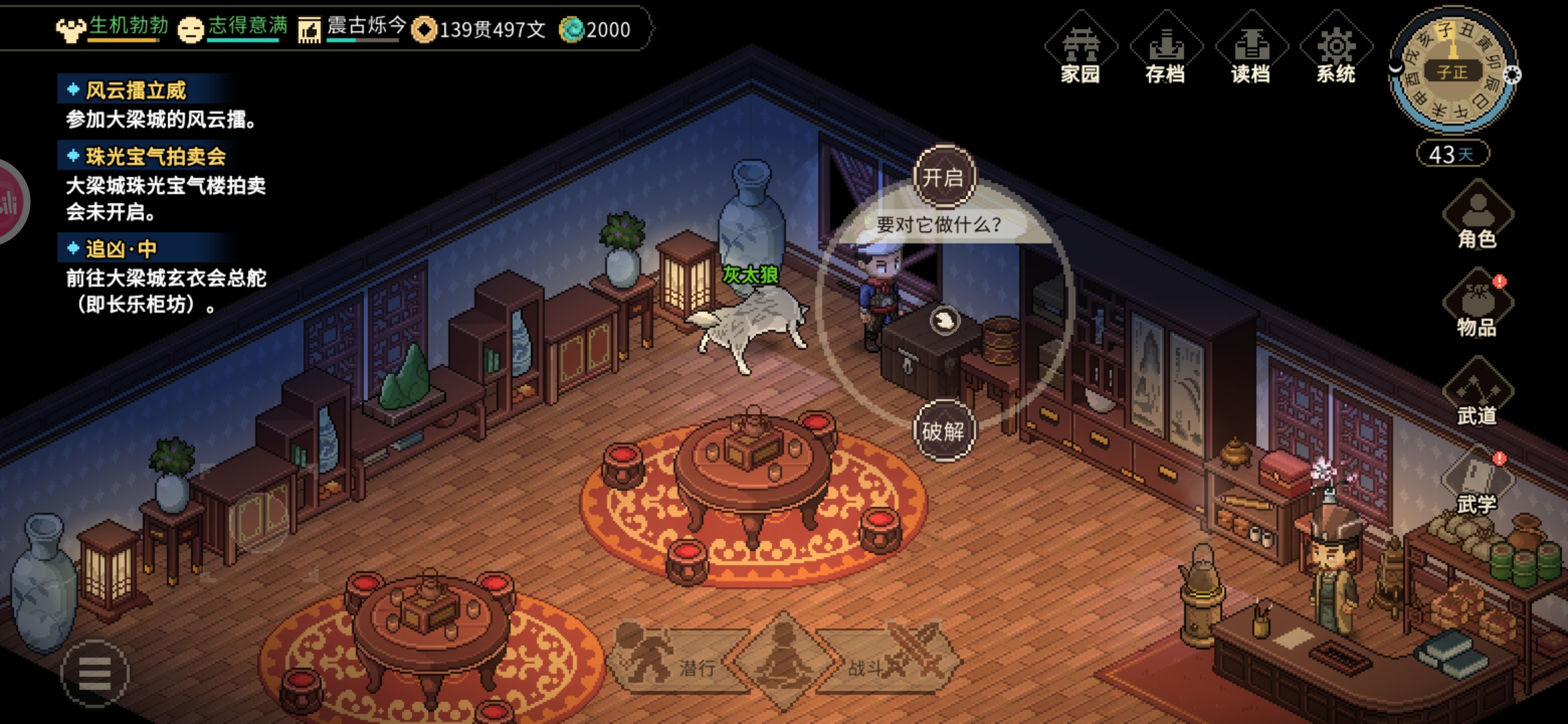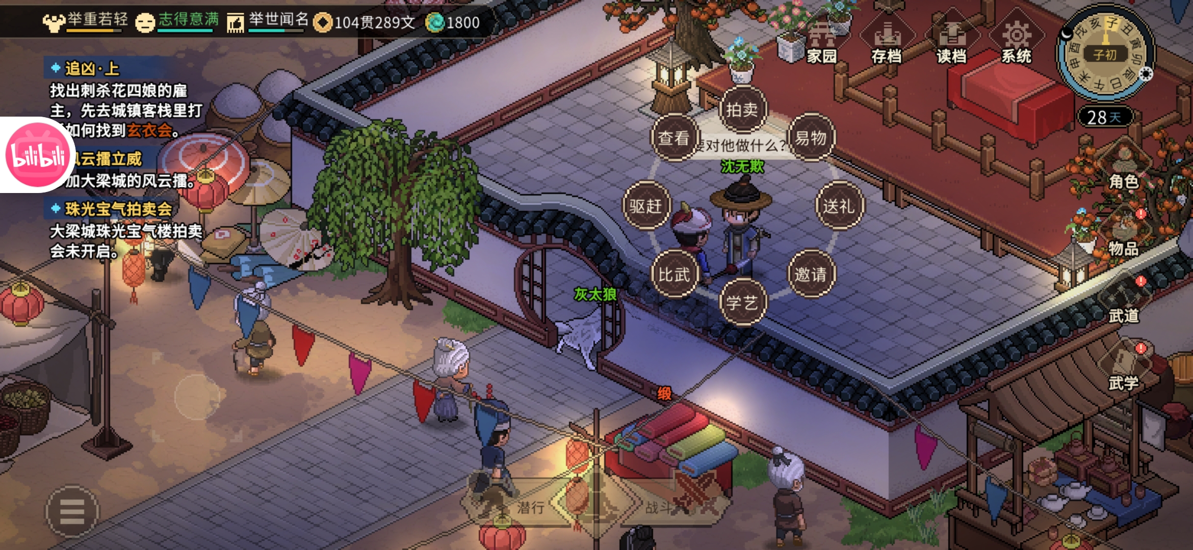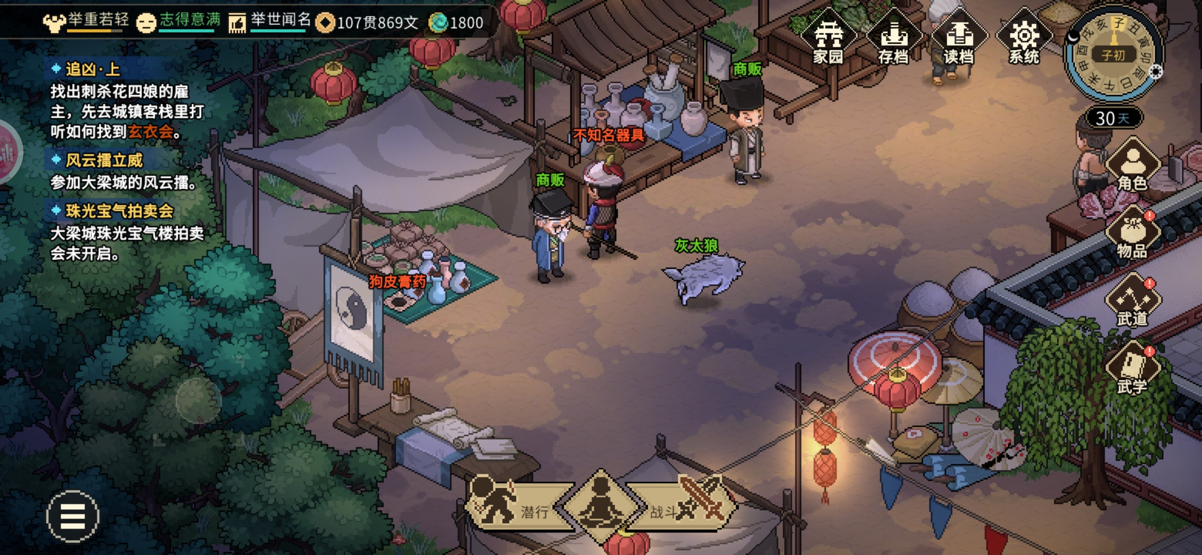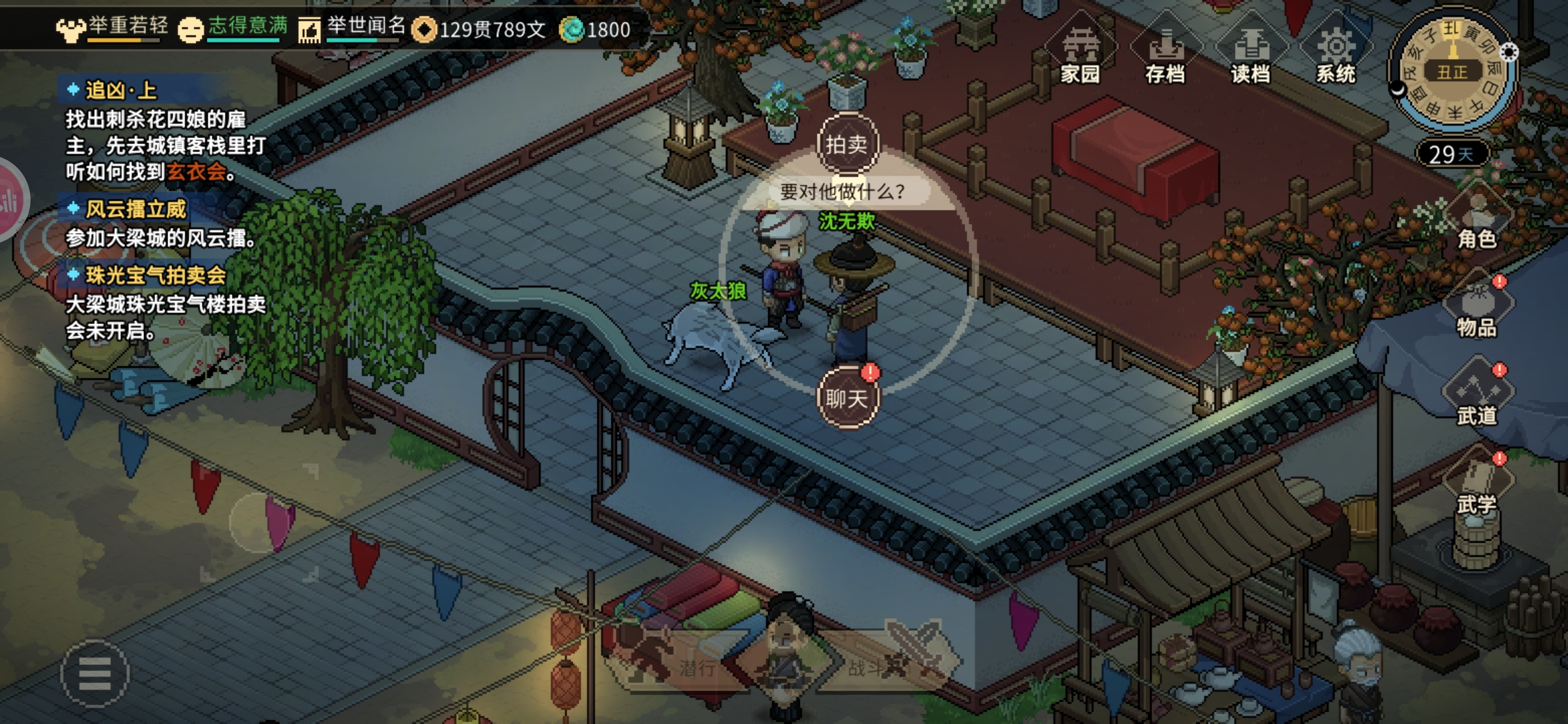 子时参加拍卖会——儒圣馆拜孔子——回大梁城对对子——买布,当铺买鉴定品,杂货铺买工具——参加擂台(打到乙级无视)——后山采集