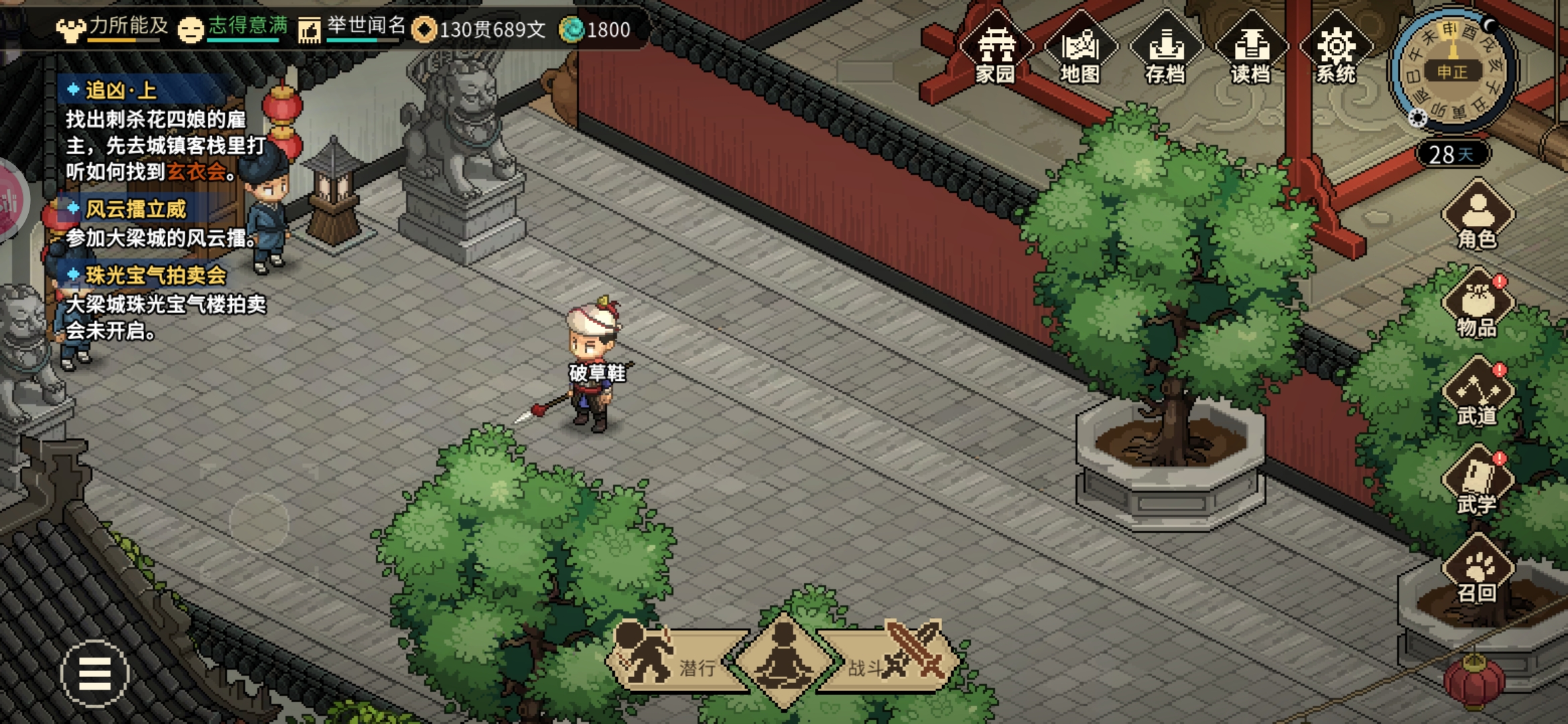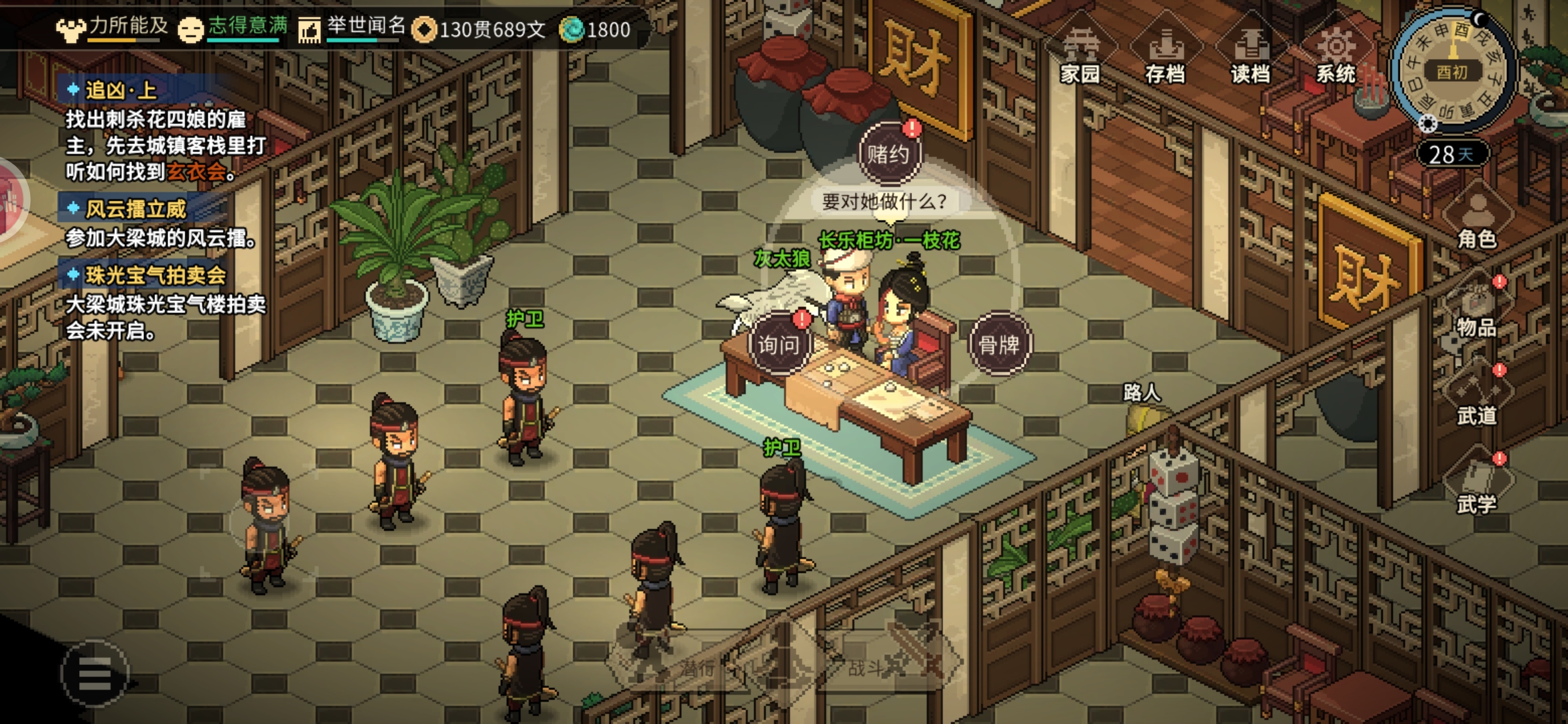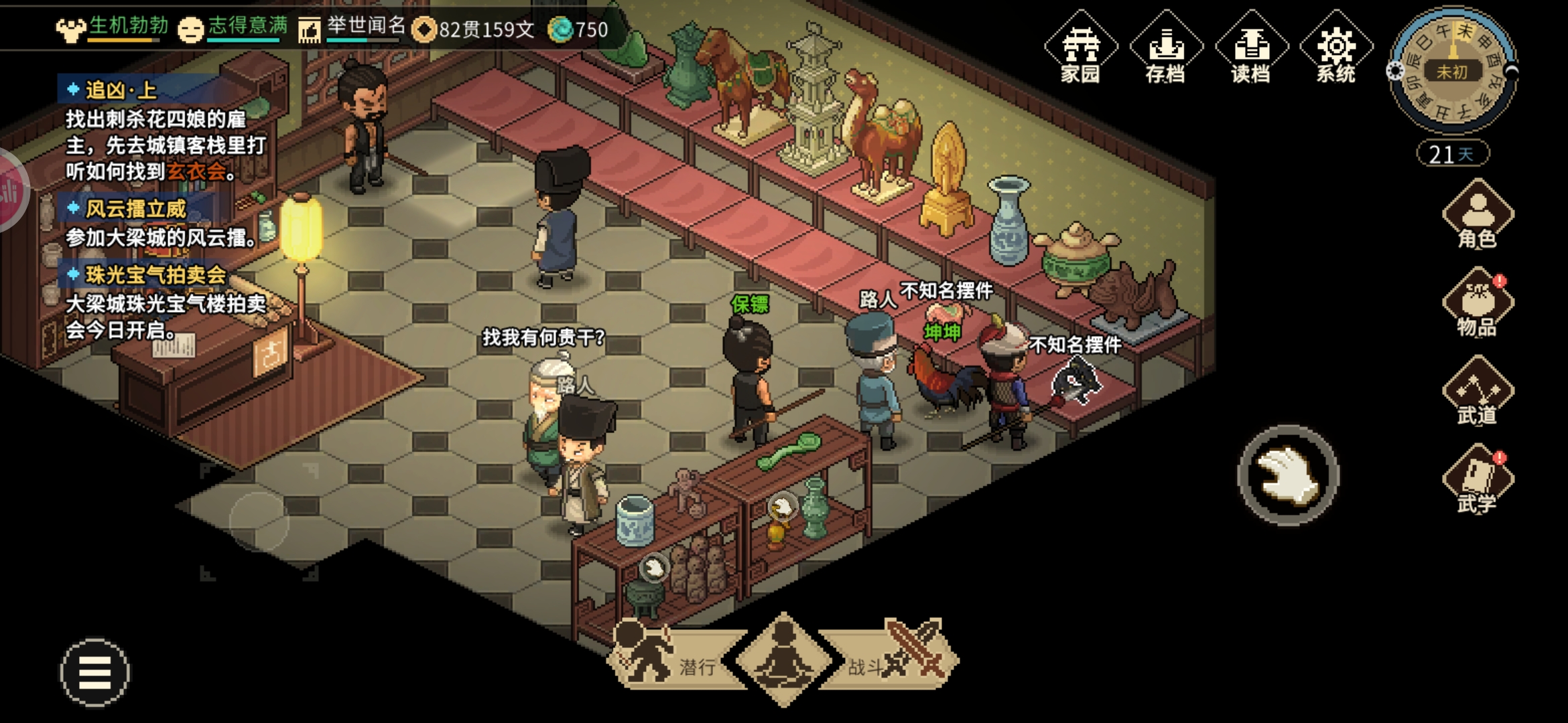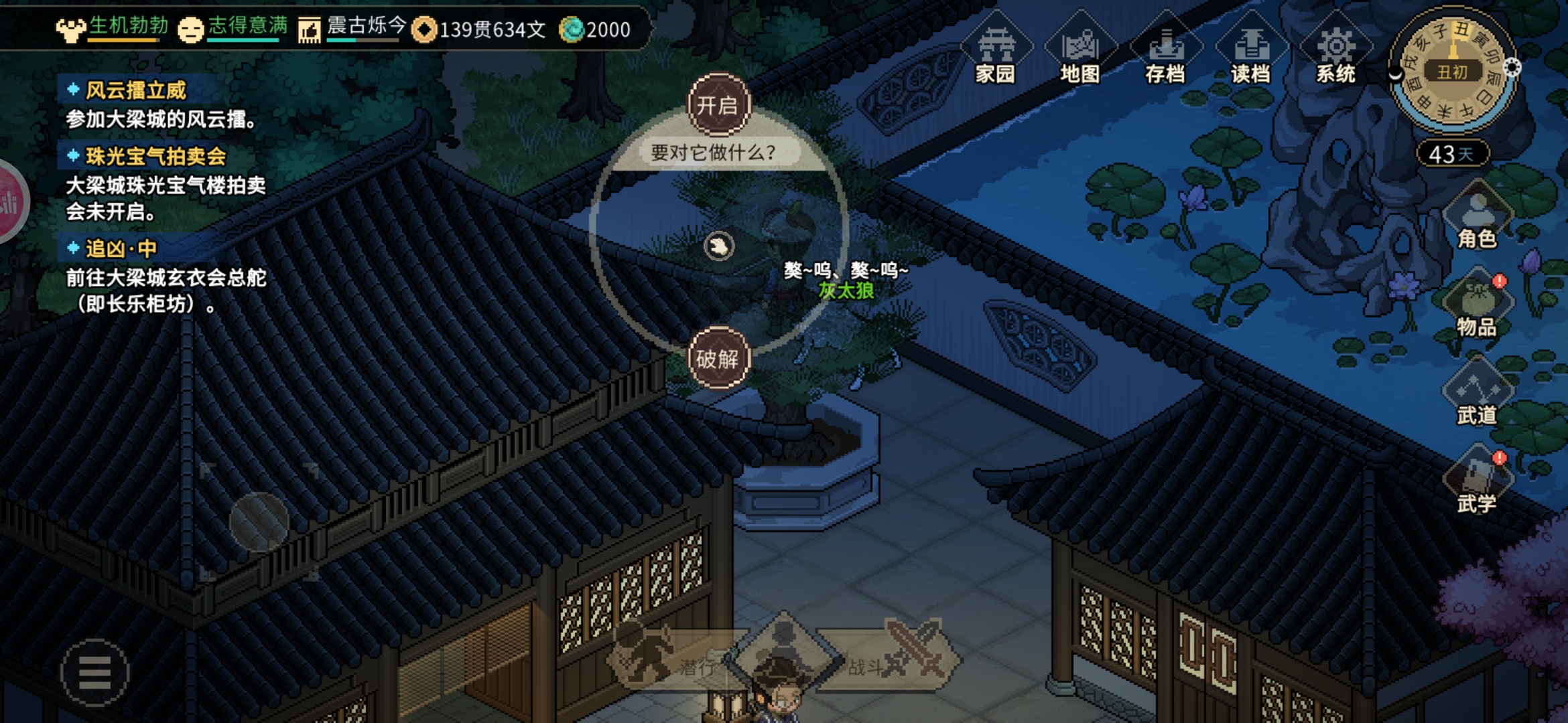 子时参加拍卖会——儒圣馆拜孔子——回大梁城对对子——买布,当铺买鉴定品,杂货铺买工具——参加擂台(打到乙级无视)——后山采集