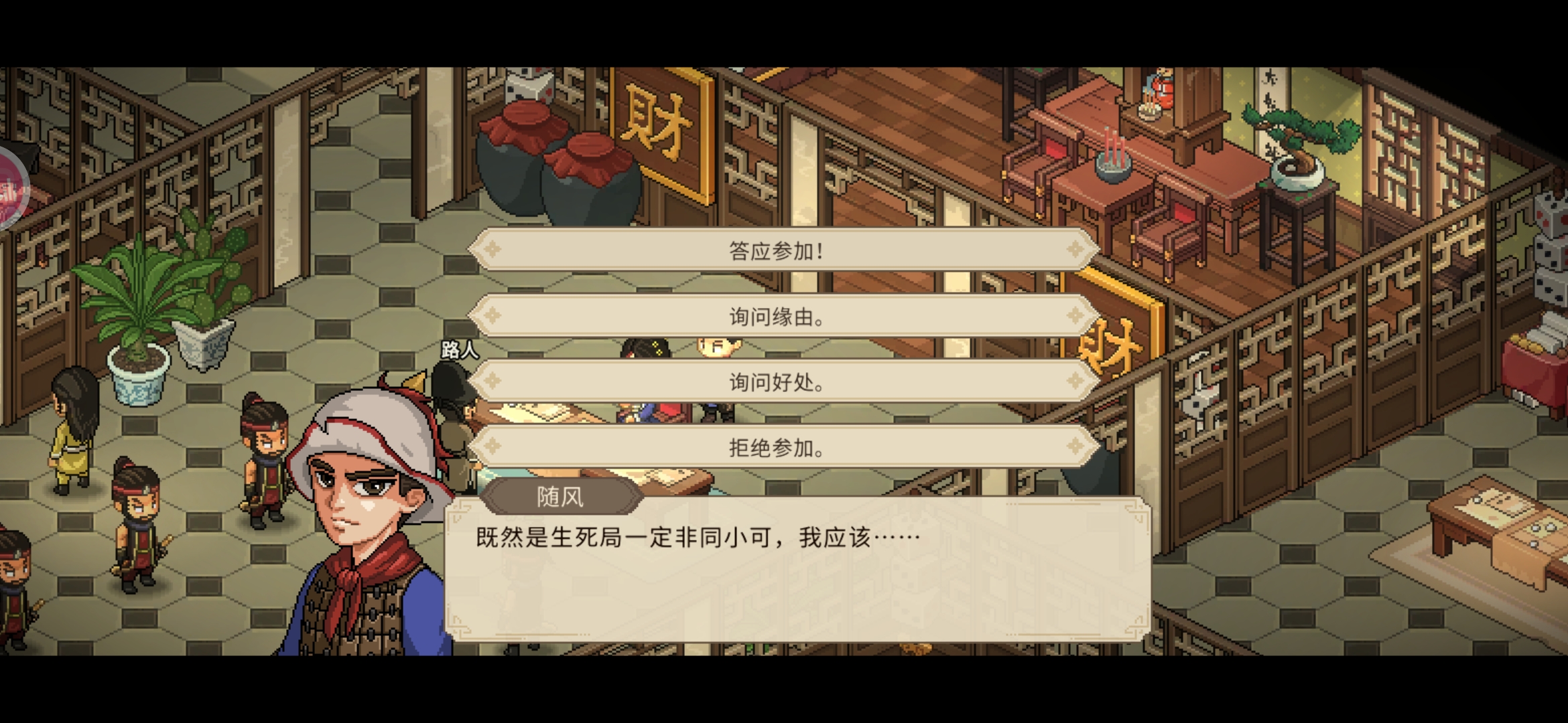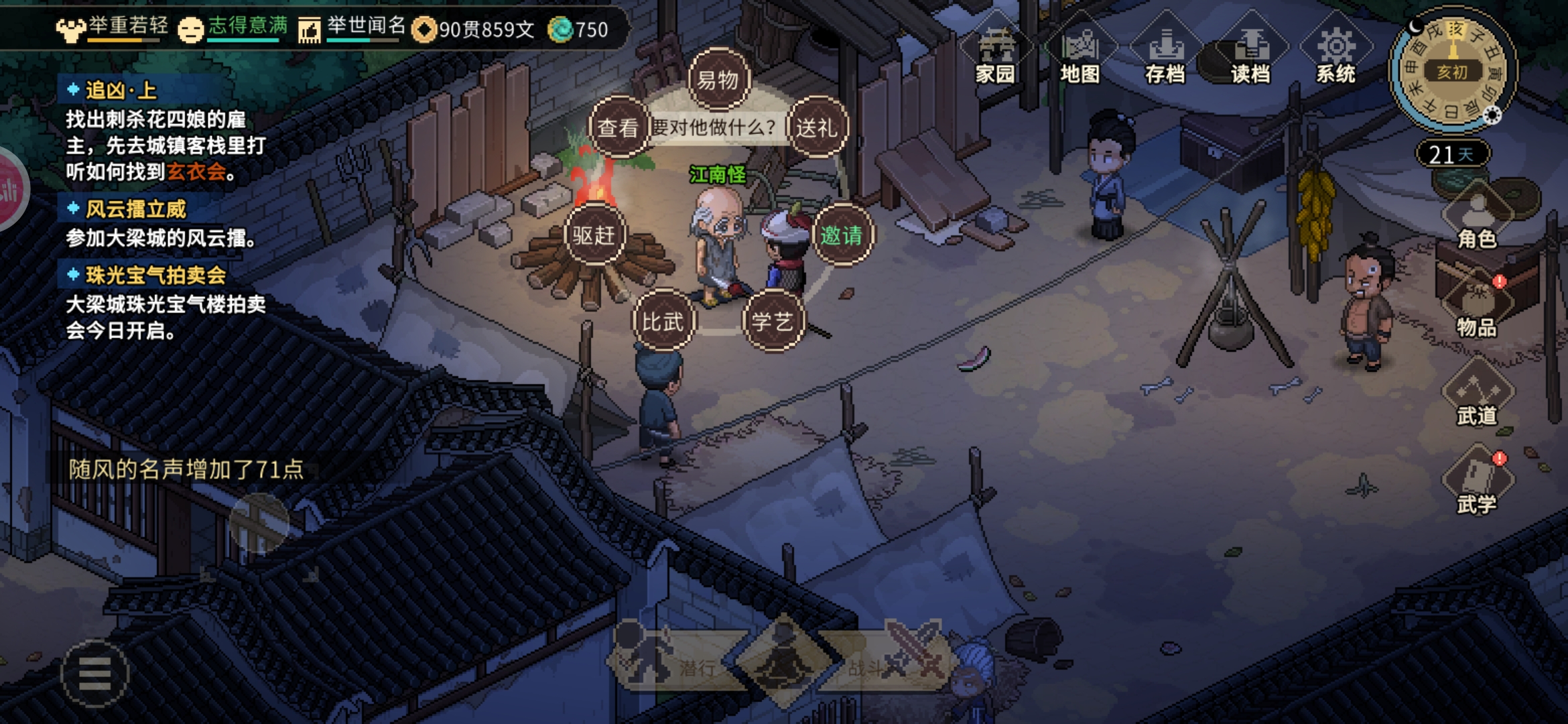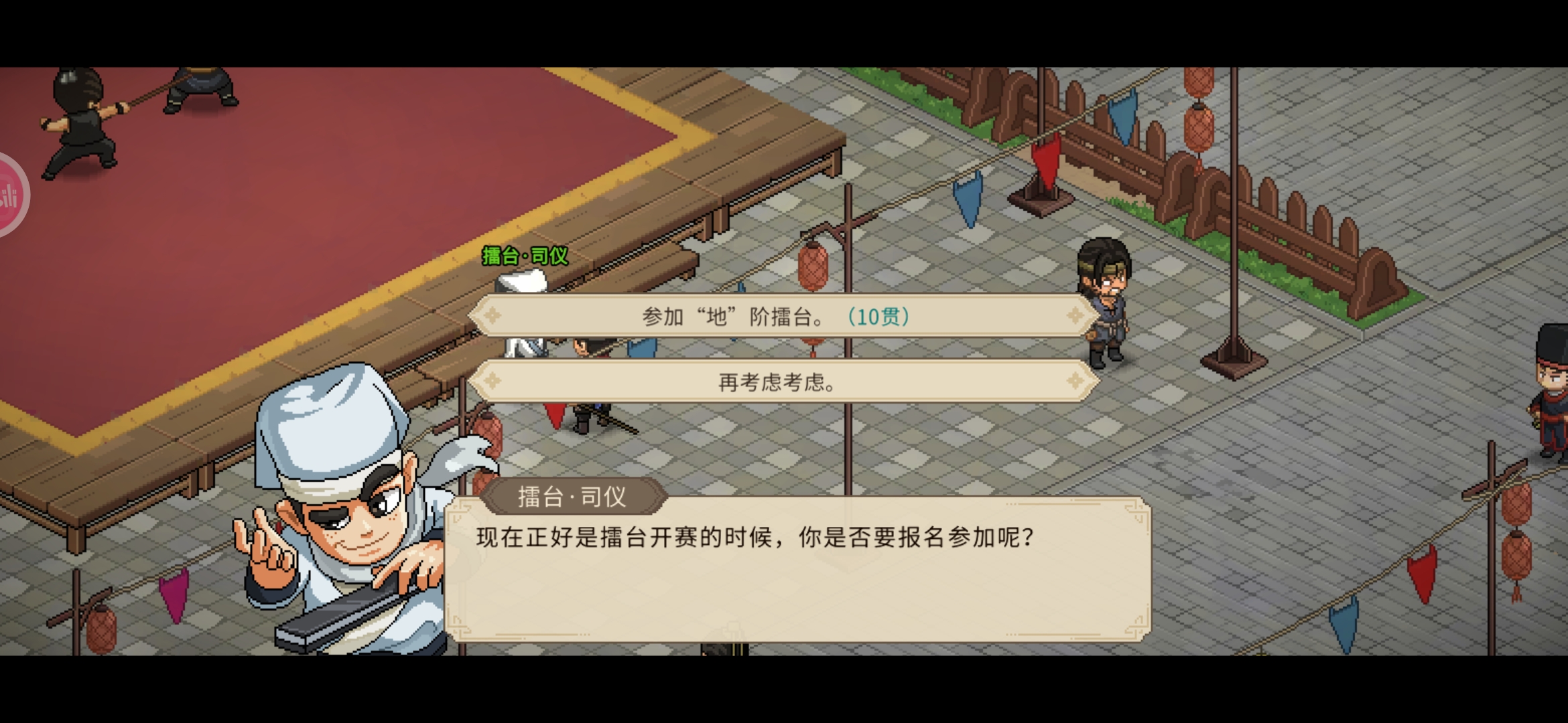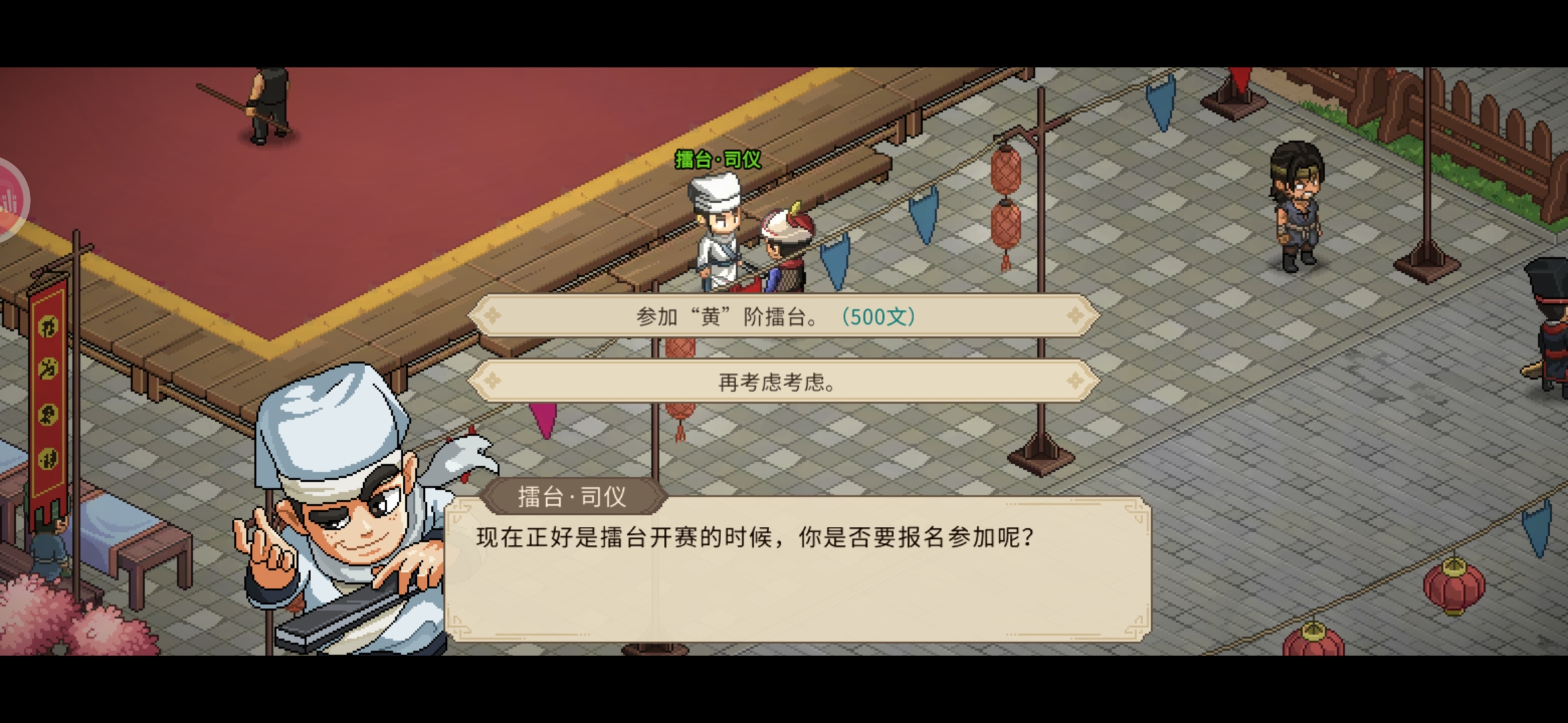 还有一个比武招亲的擂台,参加然后给20贯钱,获得一个丹药,别吃