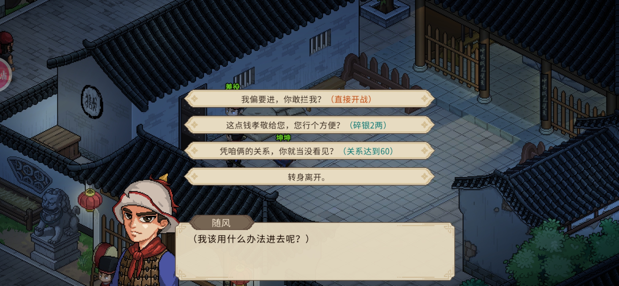 最后去脏街,打点关系,给老怪送礼至100(60会有个任务,这里我们先不说,把三段扫街做完)
