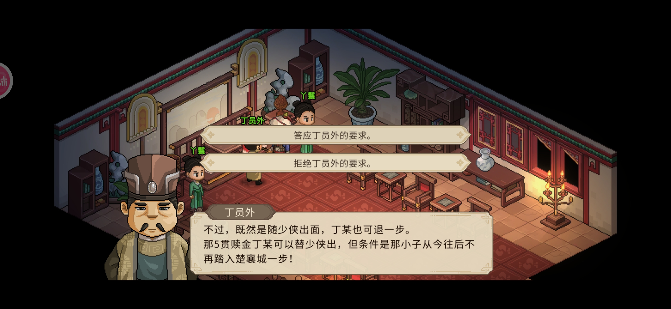 回楚襄城继续买麻线绢丝,然后去大牢交易钥匙,对话李乐雅,切磋3次