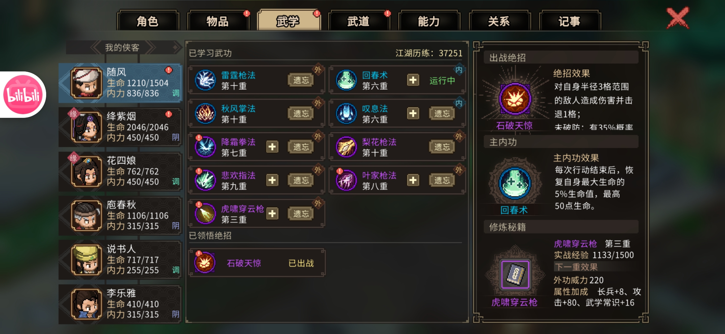 打完给我们虎啸穿云枪,位置不够可以把捕兽叉法忘了