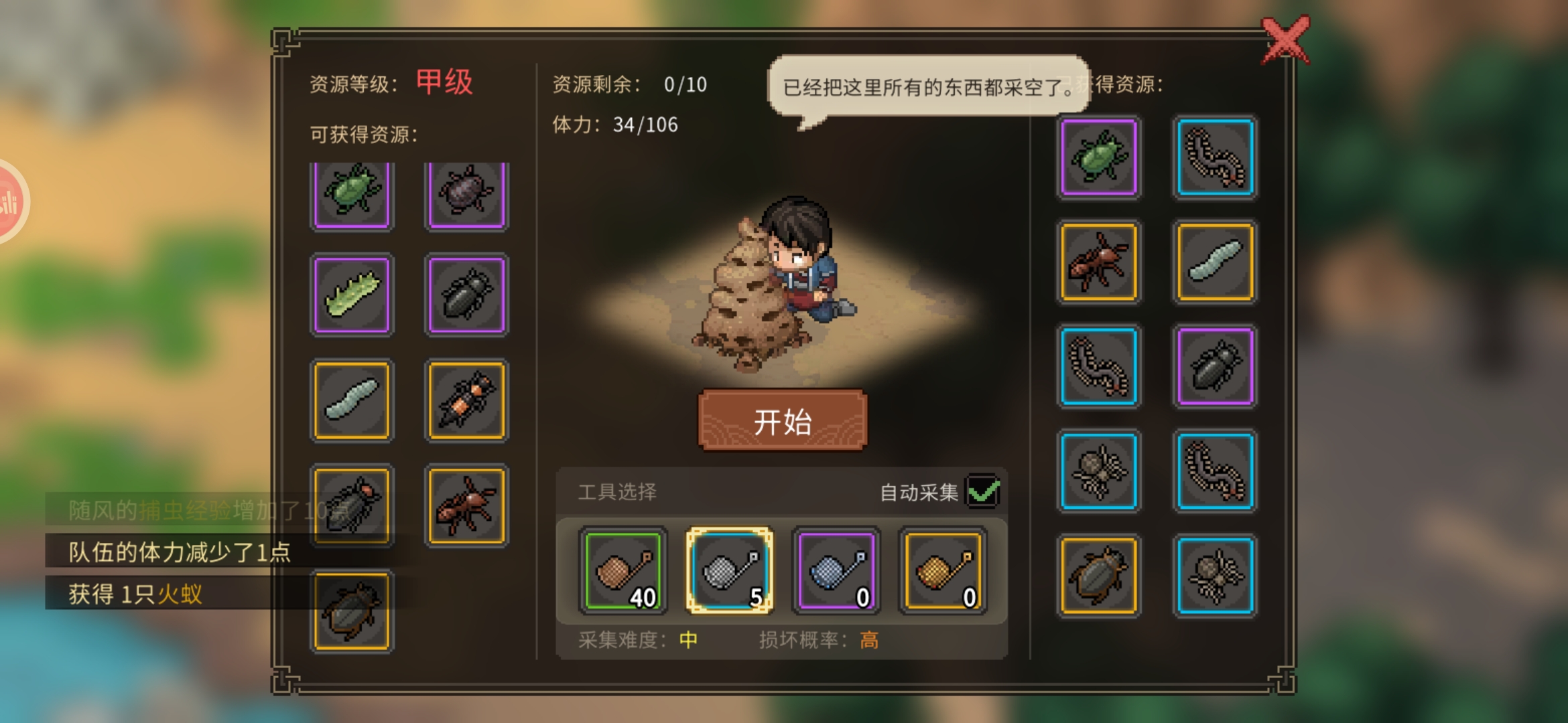 对话,触发剧情,戴引虫香去采集,sl一个任务道具(5级家园才会有,这个时候必须升了)