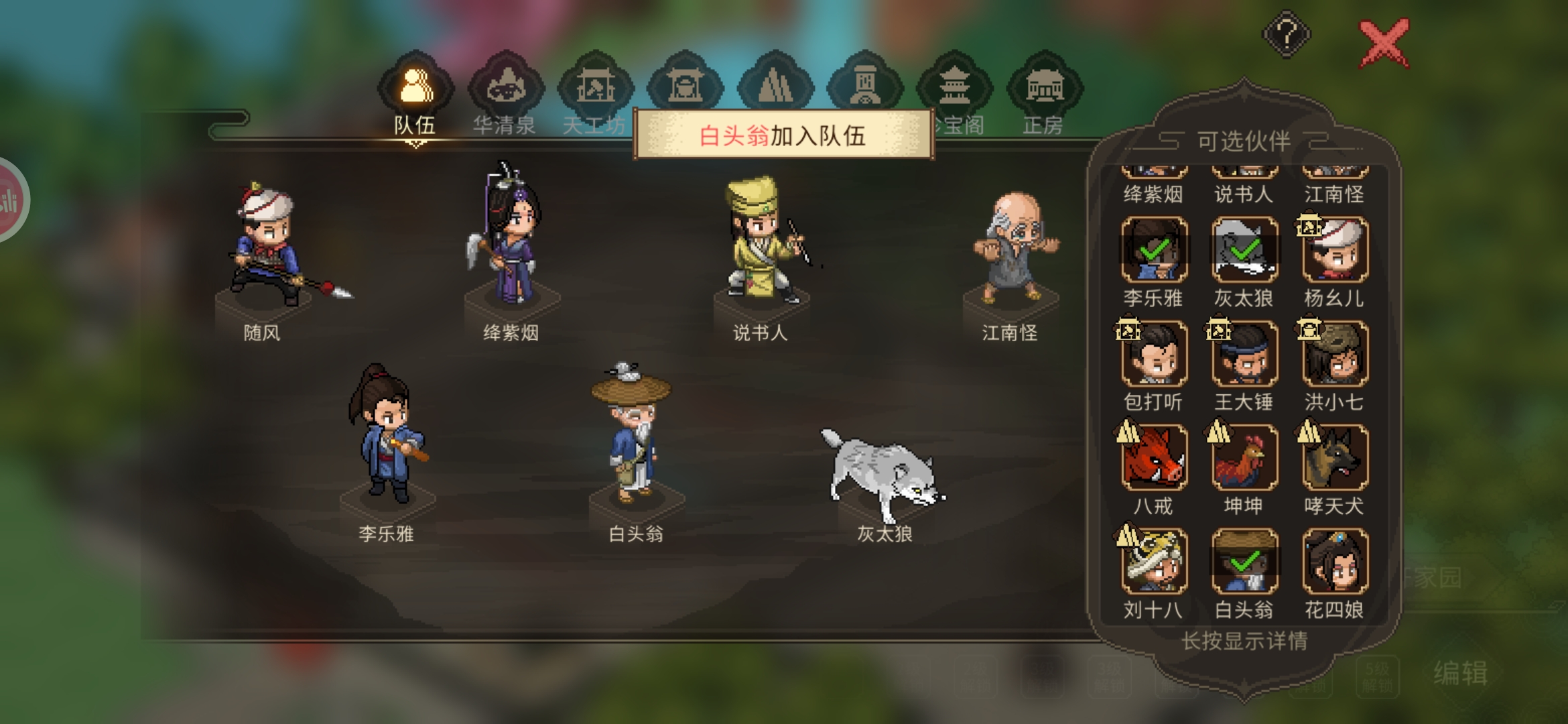 让白头翁先进队(这个队伍配置不对啊,最好是小紫四娘说书人李乐雅+自由位)