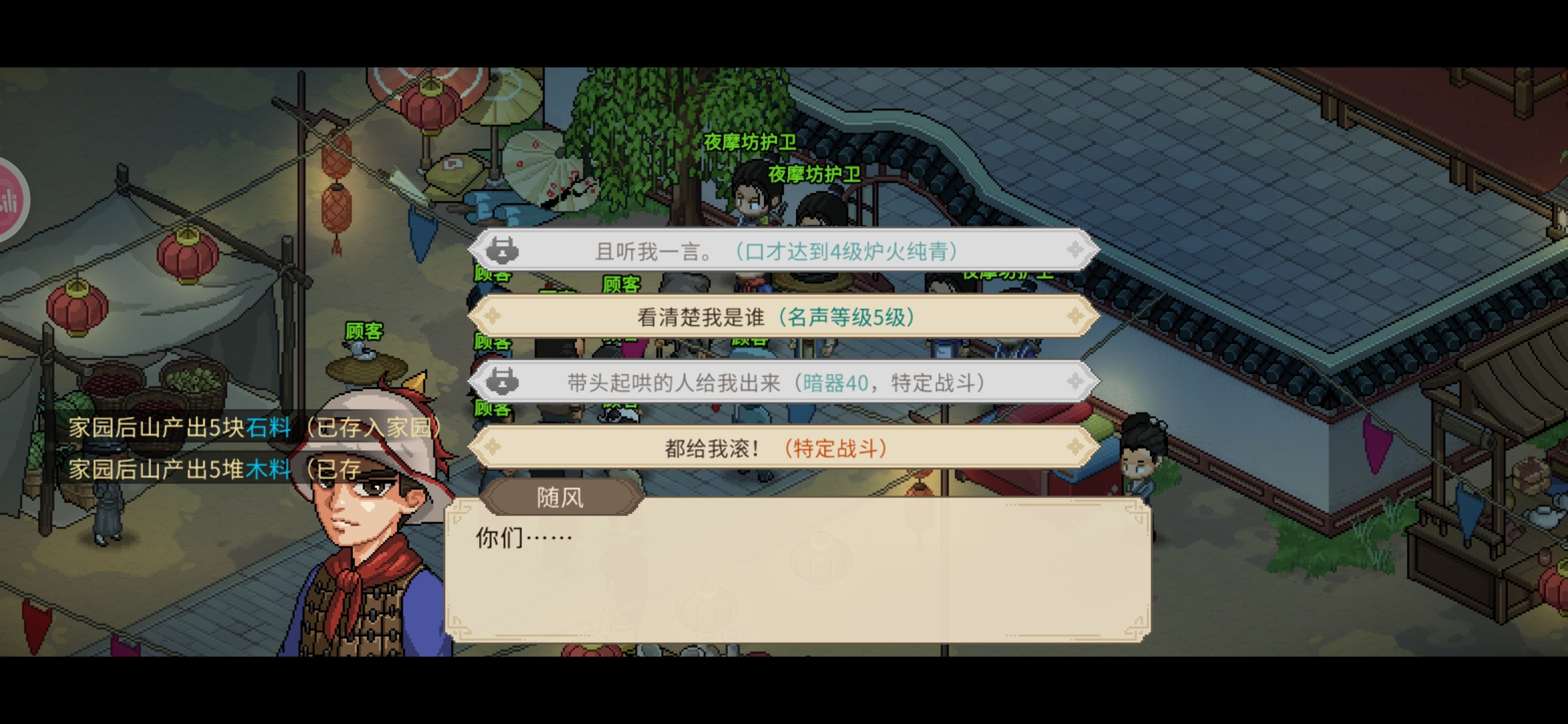 触发剧情,这里我就不放回春堂和铁匠铺的图了,直接去对话即可