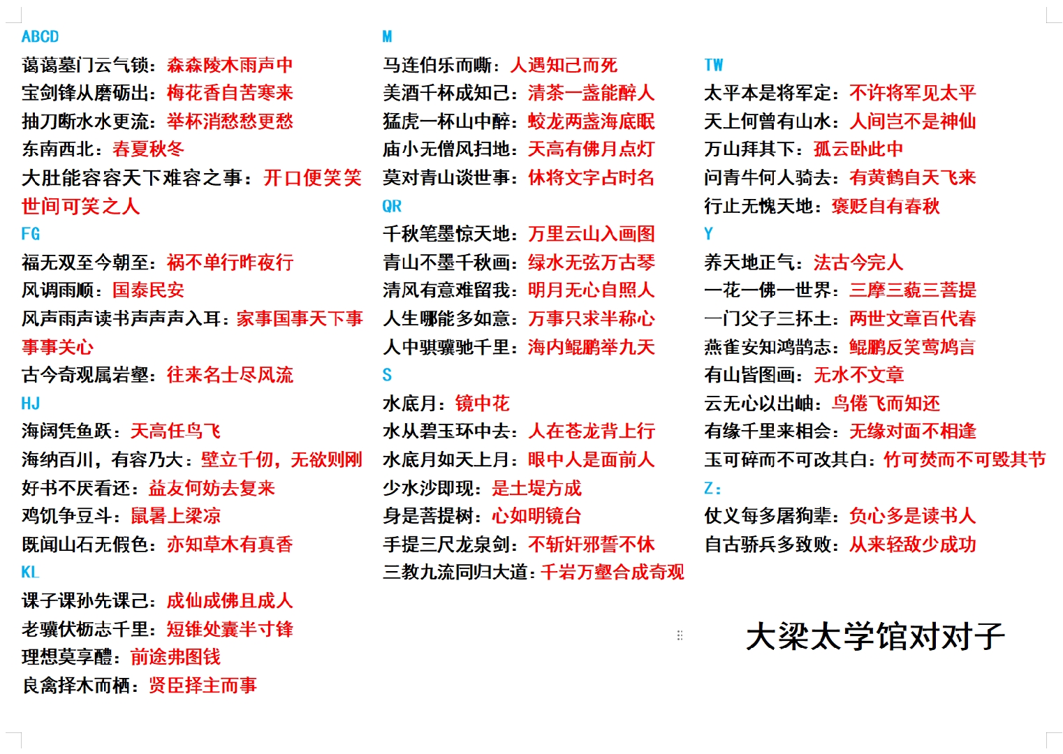 去太学馆对话,开始对对子,答案如下(没有百度即可)