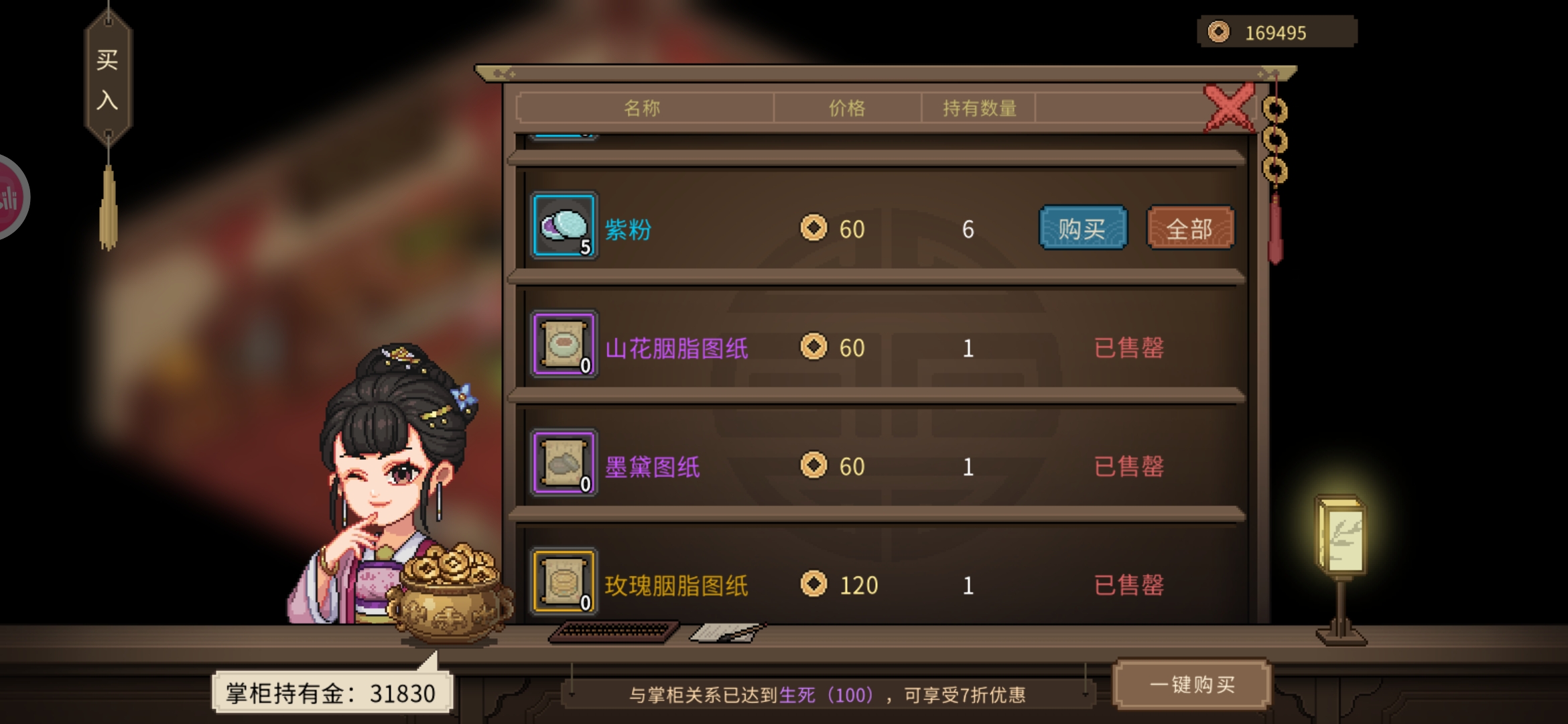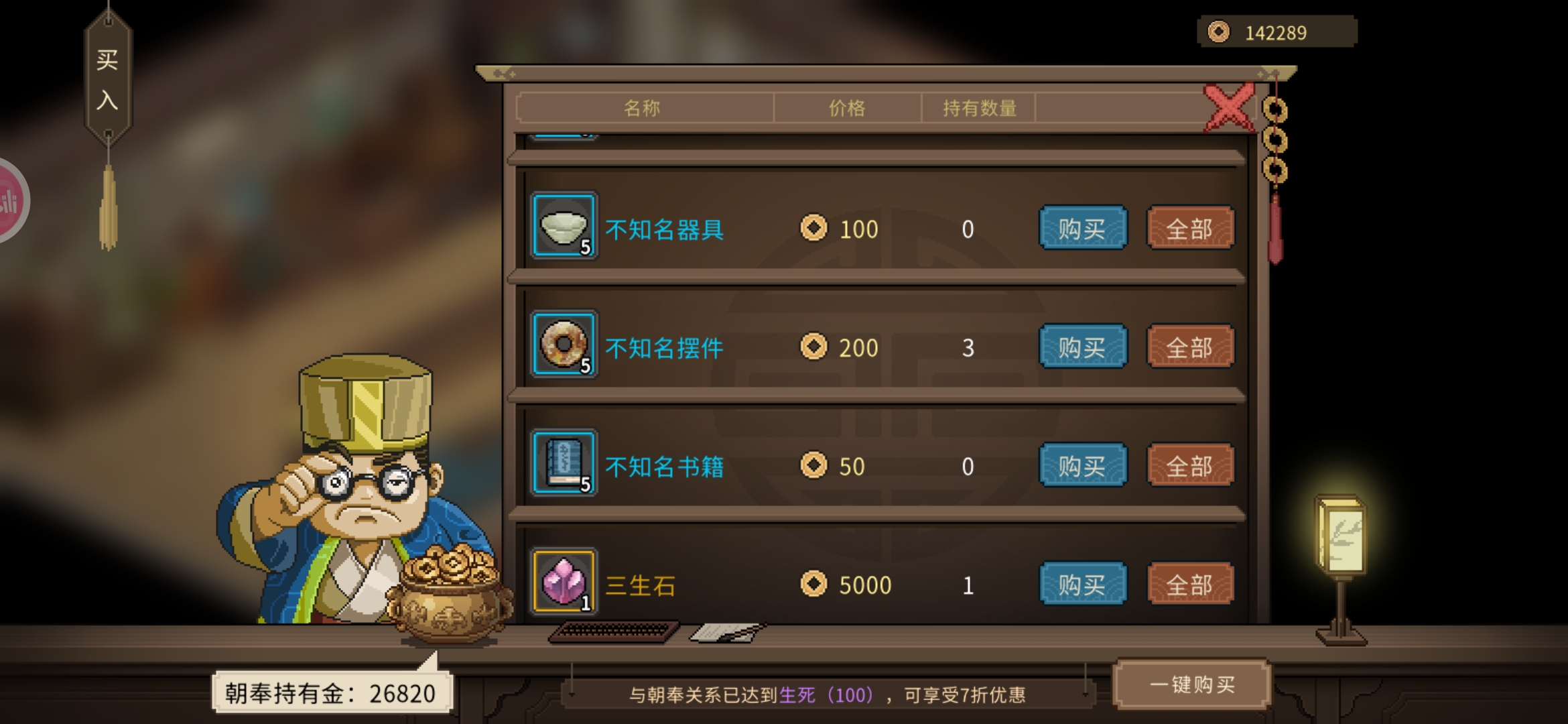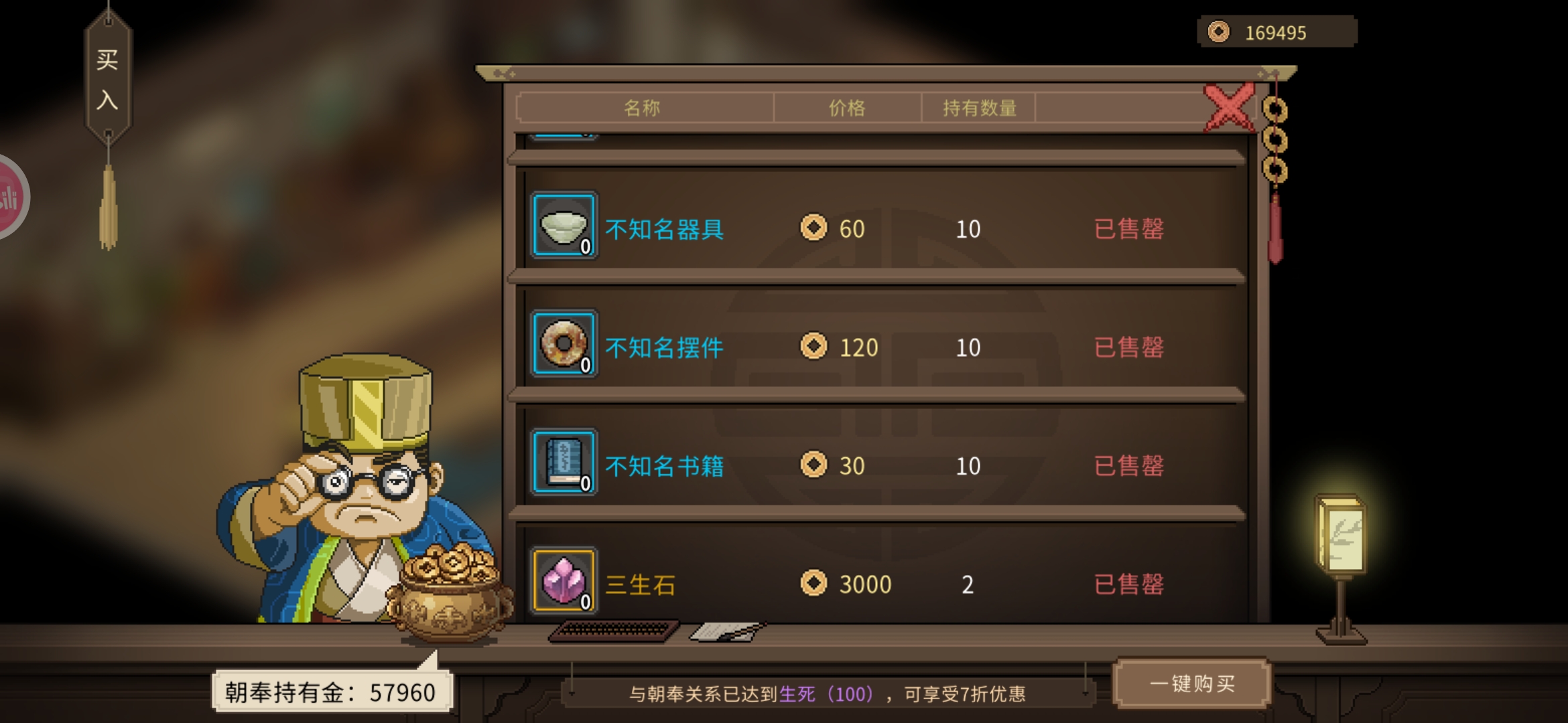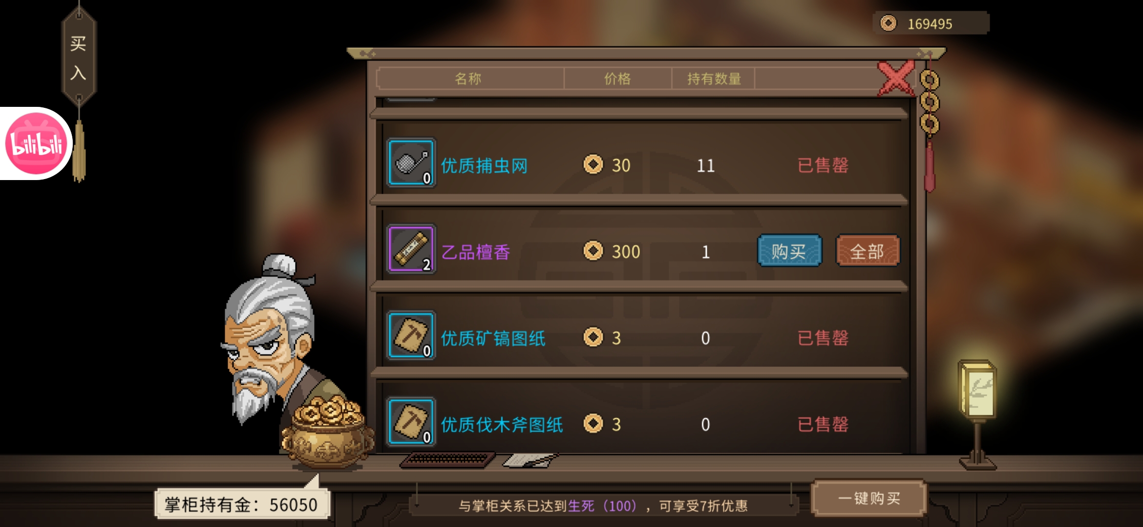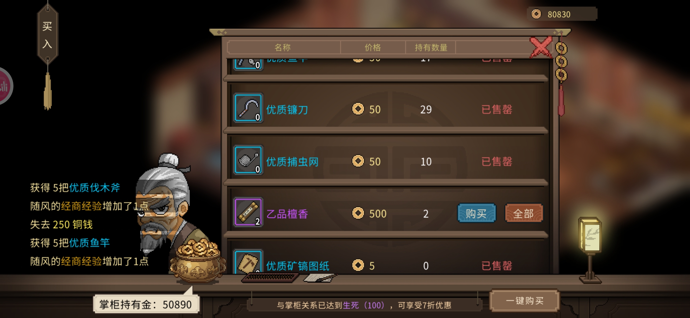 去杂货铺买采集工具,再买两根香(没错,如果你跟着我走,你已经知道要干什么了)
