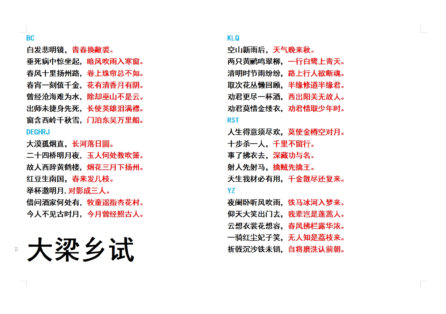 到第五次对对子后去衙门那里参加乡试,答案如下