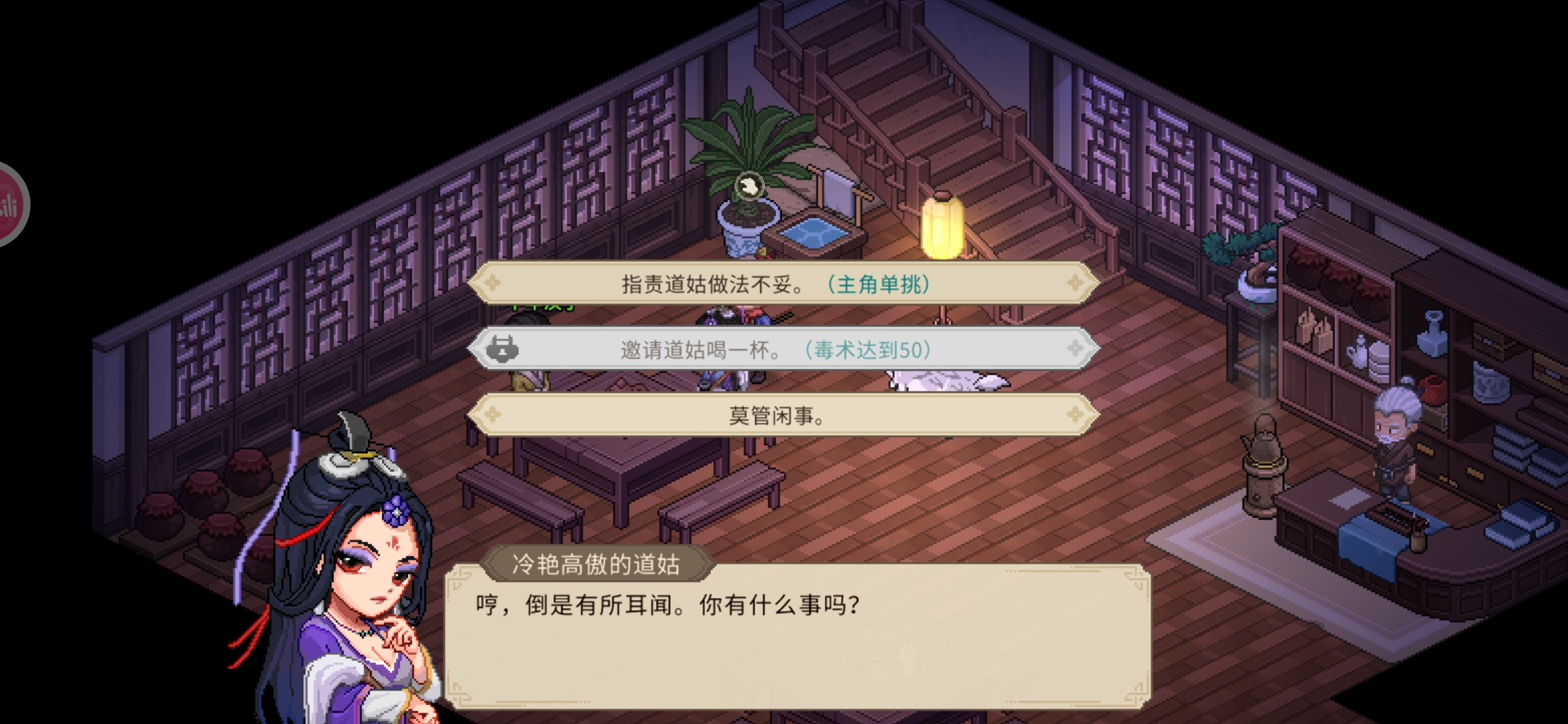 切磋完后直接打坐到子时,触发剧情,选择出手相助