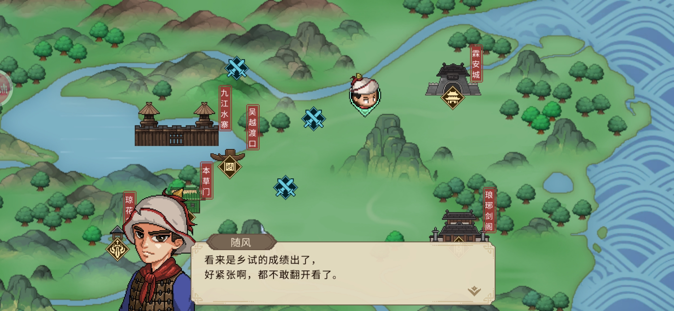 直接出城,路上可能收到乡试结果,不用管,去九江水寨