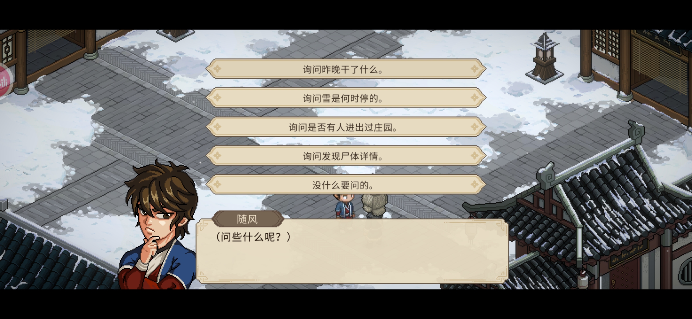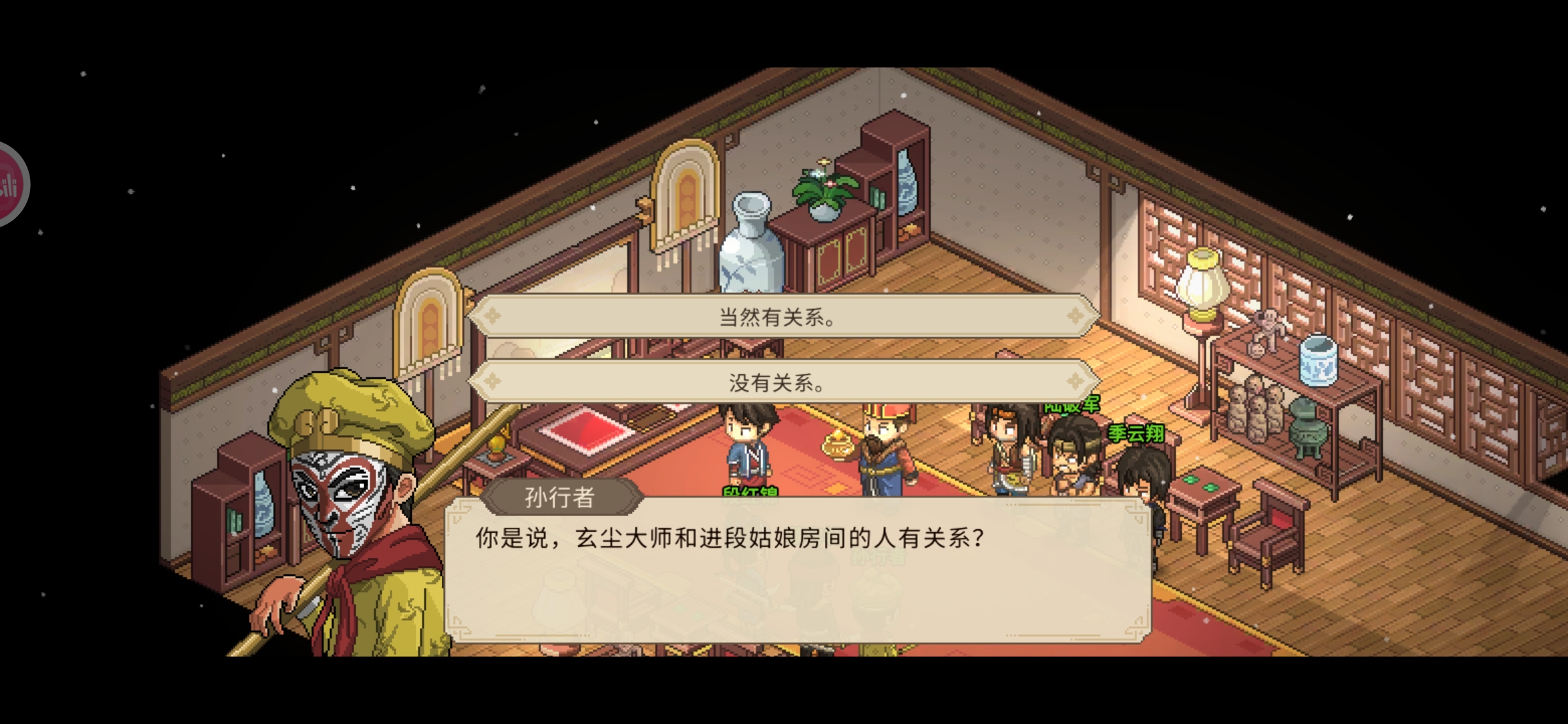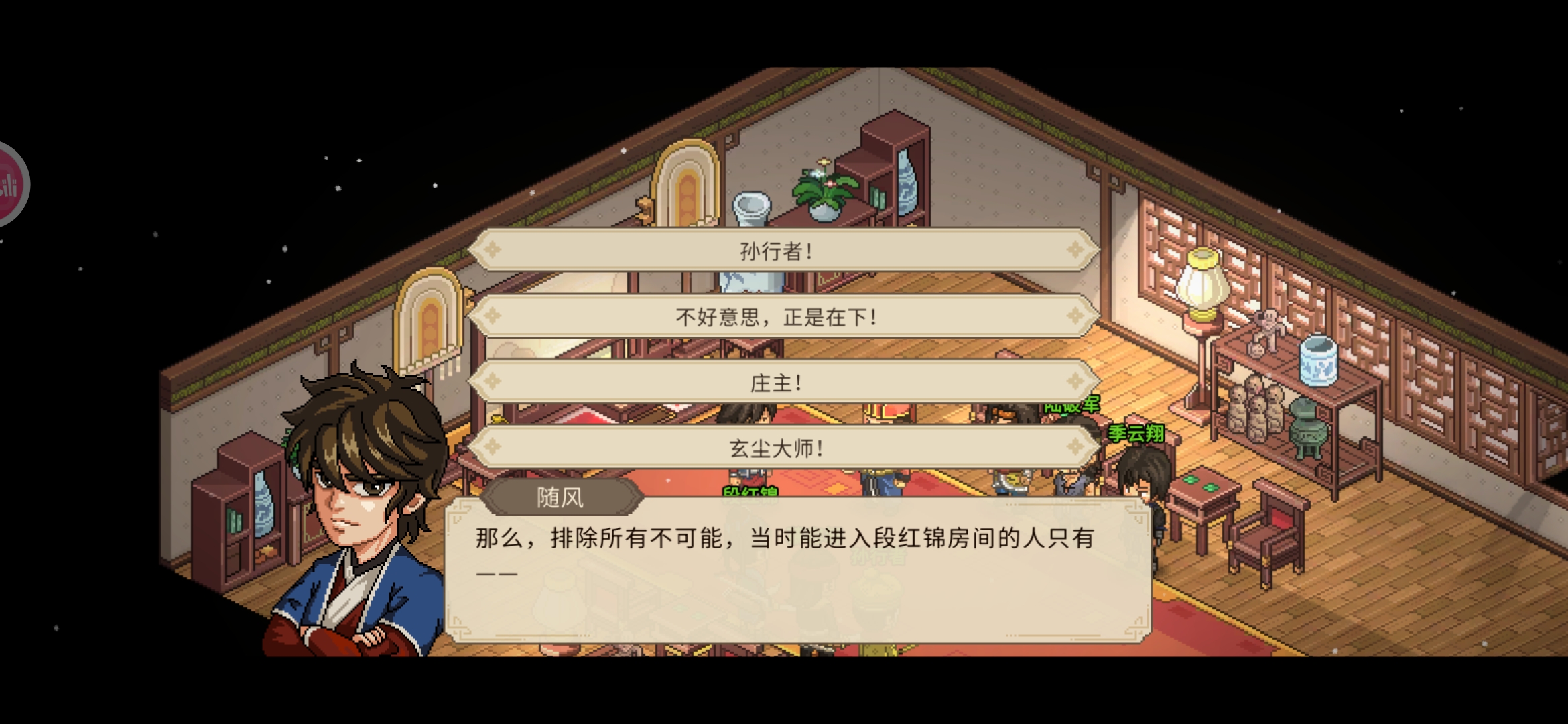 这里把所有人都问一次(然后再问一次女随行守门,在去问隔壁三人组,没有触发大厅集会就代表没问完,再把后面这五个都点一次就行)