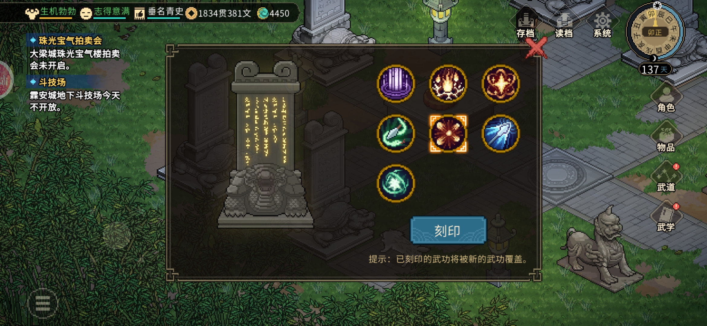 刻印九州诀,万民掌,可以存个档,练一练能力,基本就算完结了