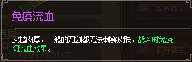 乙级特征:免疫流血;获取途径:在霖安城我们会遇到一个道士,他会说我们有血光之灾,要我们交5贯钱,会帮我们逆天改命。选择交钱后获得此特征。