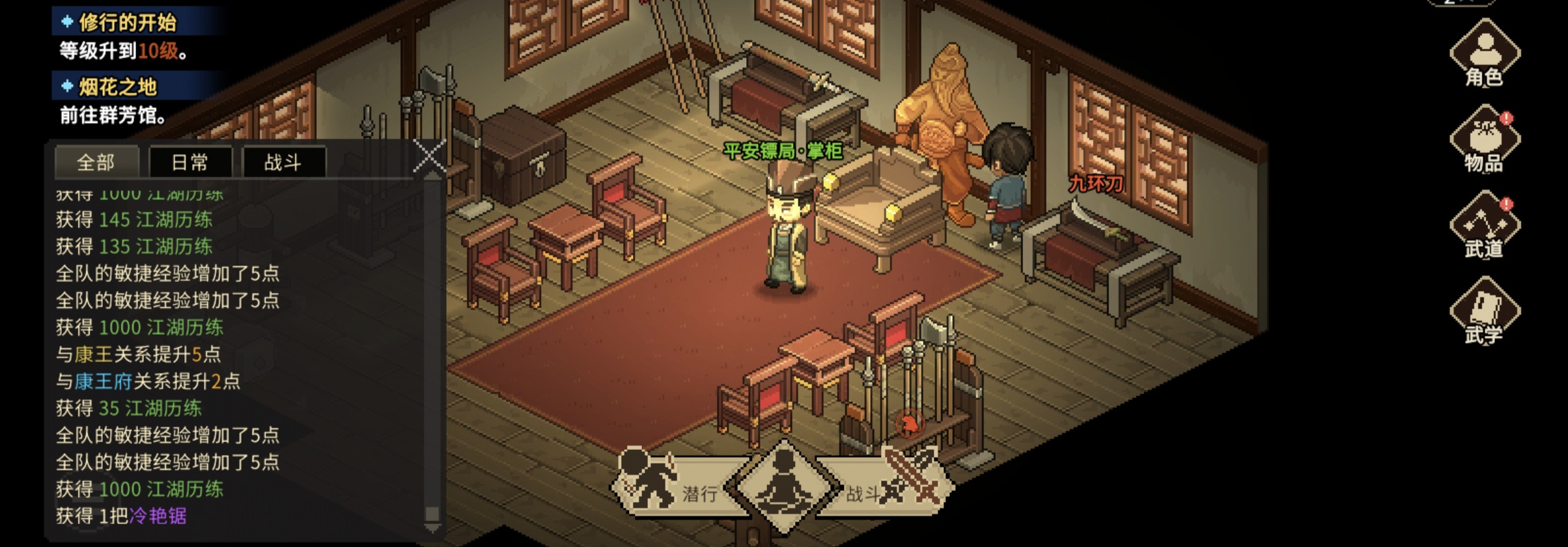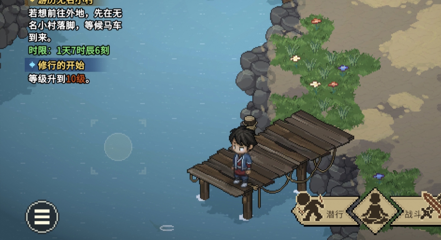 然后往上面走,打探出无名渡口,他说的鬼话我们不要信,去了就被卖了,然后原地开战斗摸他一下他自己就跑了然后直接背后开潜行,突袭!