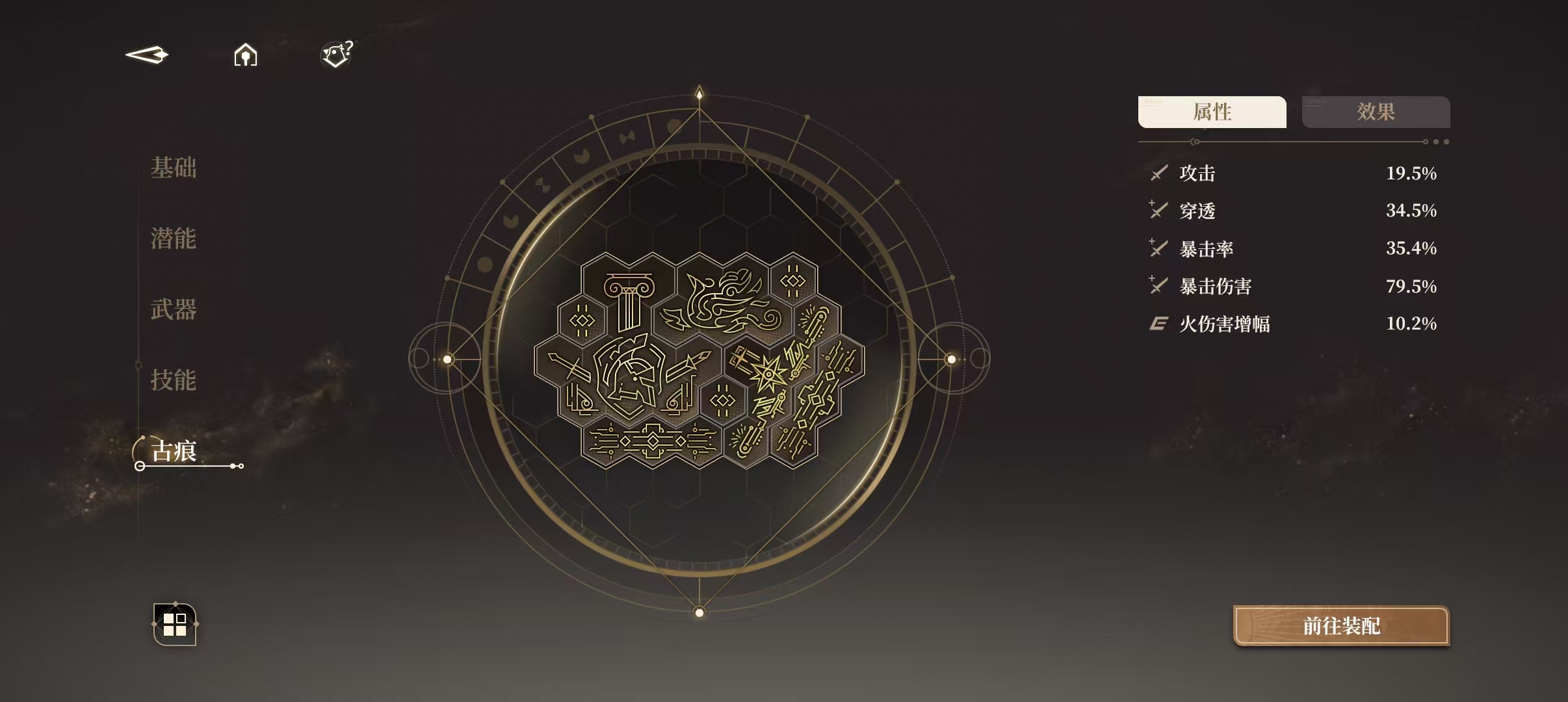 古痕系统中一共有三种等级的古痕(1孔、3孔为低级古痕,不带效果、5孔为中级,带一条不可叠加的效果、10孔为高级古痕,重复装效果可叠加)填充古痕时,优先10孔>5孔>3孔>1孔,因为等级越高的古痕给的数值越高。