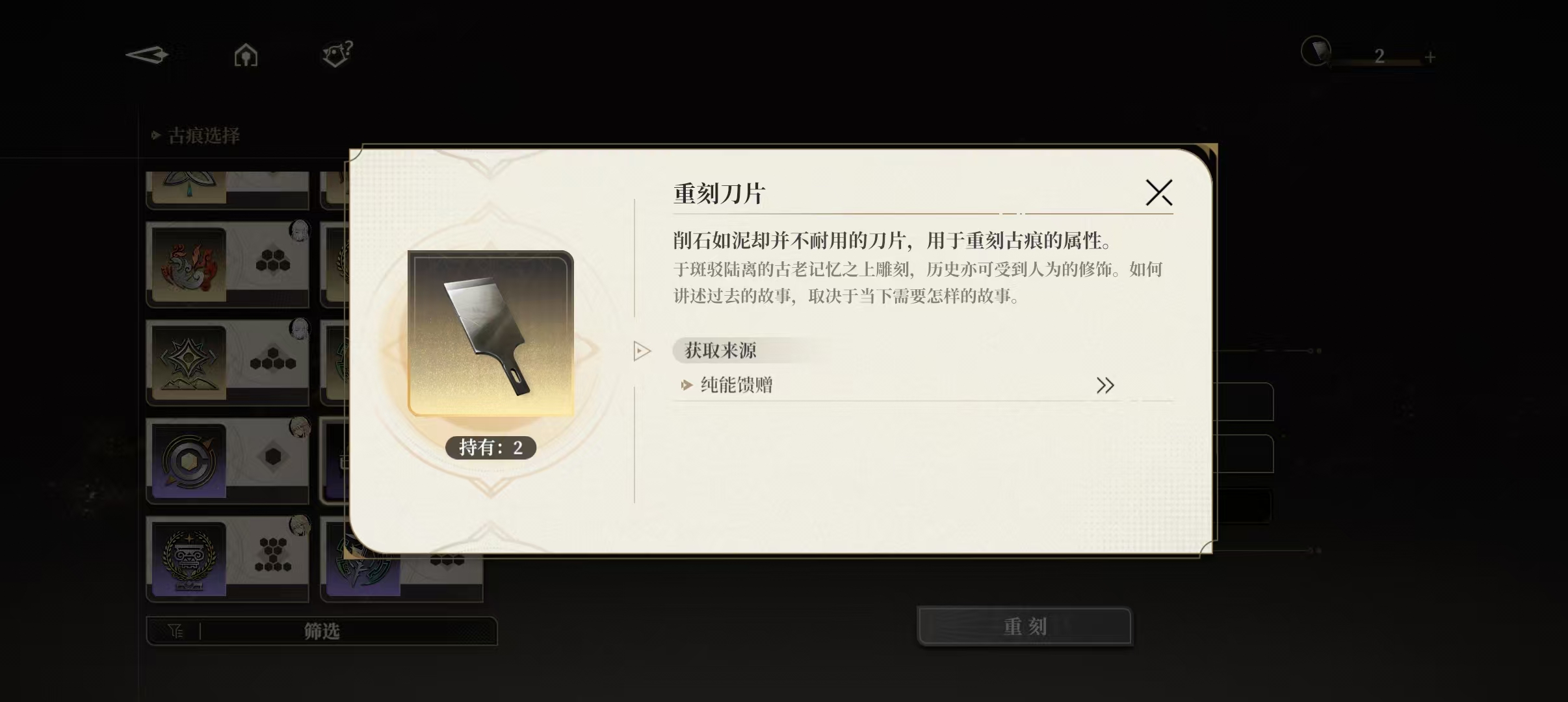 古痕的词条:古痕的词条是比较重量级的存在,毕竟说到词条,就少不了随机数的存在,而中高级的古痕目前只能在商店用肉鸽刷的货币购买,这也就意味着古痕的养成就是不断的重复刷肉鸽获得货币,去商店买古痕,出来一看词条歪了一天白干,接着继续刷的过程。