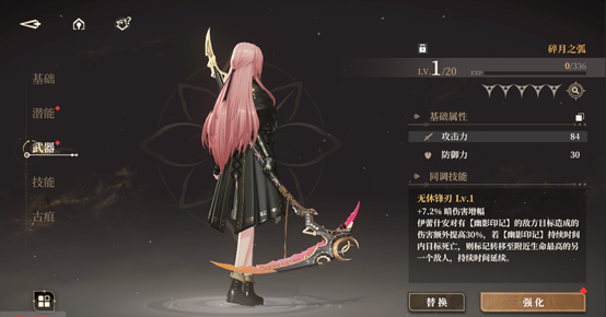 都说颜色越粉,打人越狠,在巴别图书馆里,拥有这样镰刀型专属武器的就是一位粉色头发的少女——伊蕾什安。我们接下来要介绍的就是伊蕾的专武——星月/碎月之弧,还有专武的同调。
