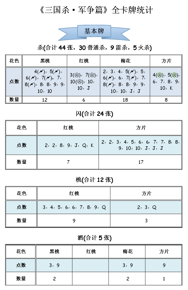 ①基本牌:12张桃、1张酒、14张红杀、24张闪