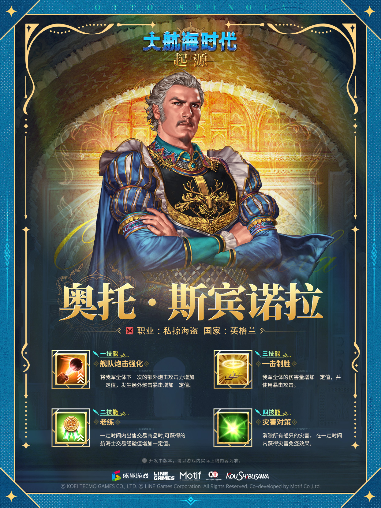 提督们好!今天,让我们一同走进奥托・斯宾诺拉的征战海域,了解这位英格兰海军提督的传奇过往,解锁他的专属技能~