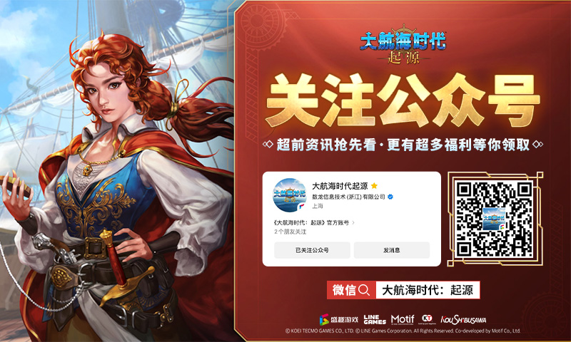 关注@大航海时代:起源 官方账号,获取最新资讯,扬帆起航!
