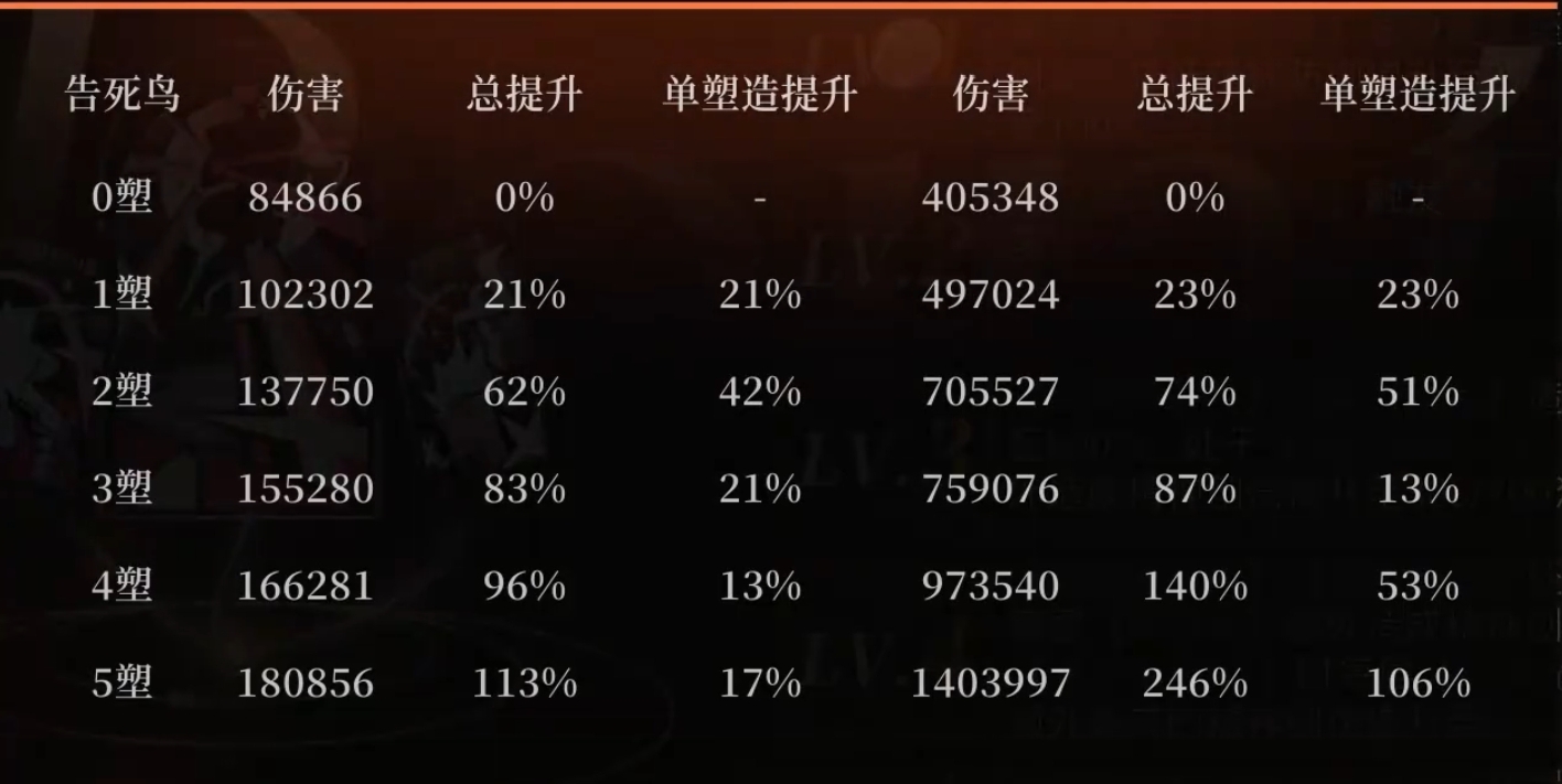 塑造建议:止步2塑!0塑可满足基础输出,2塑能大幅提升伤害(前两塑合计70%-80%提升),更高塑造性价比低,新手优先留存资源养辅助或备战限定。