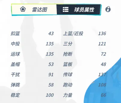 拉梅洛鲍尔拥有较为突出的传球、中投、运球属性,这让他能更好地发挥进攻组织者的能力。