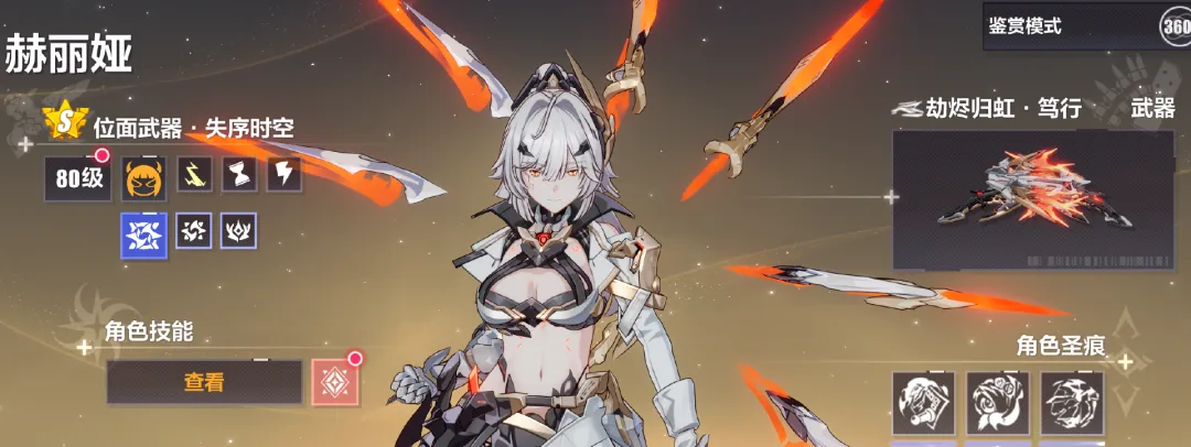 作为崩3少有的机甲类角色(上一个应该还是真理鸭),赫丽娅的装甲线条格外硬朗凌厉,高高束起的白发让她摆脱了之前的学生气,更加向久经战场的战士靠拢。我们先来简单看一下赫丽娅的实机表现与战斗特效。