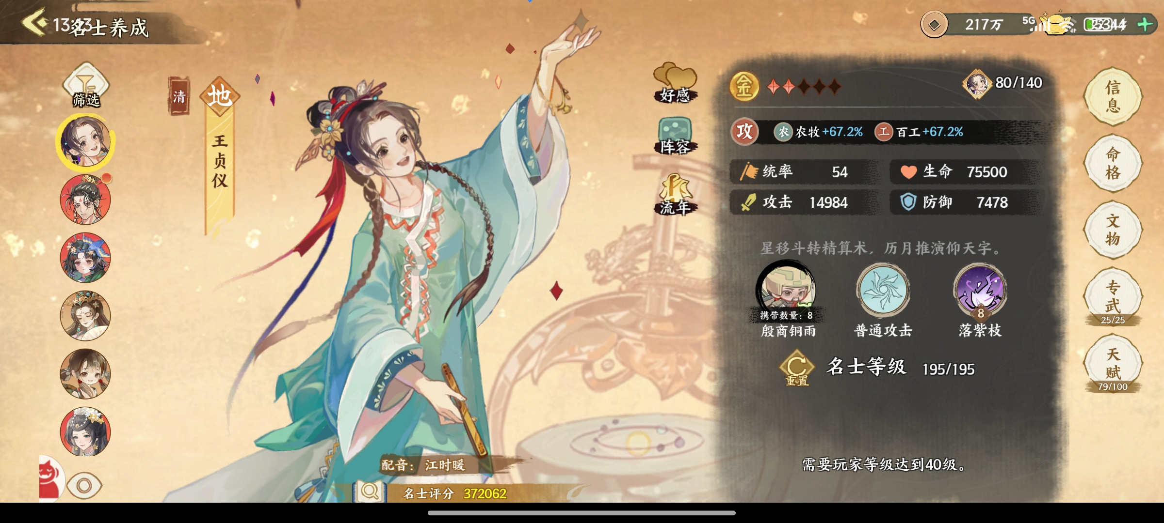 这里讲下这个金队真正的核心地卡王贞仪,这张卡在金队属于核心中的核心,因为是金队唯一的控制,基本打什么都要带,所有的自选箱子和普池200抽的兑换尽量都给她,文物选择上这个很关键,打pvp把攻速和初始怒气给她,让她能够先手开大,金队打pvp靠的就是王贞仪先手控制然后其它c位秒人!
