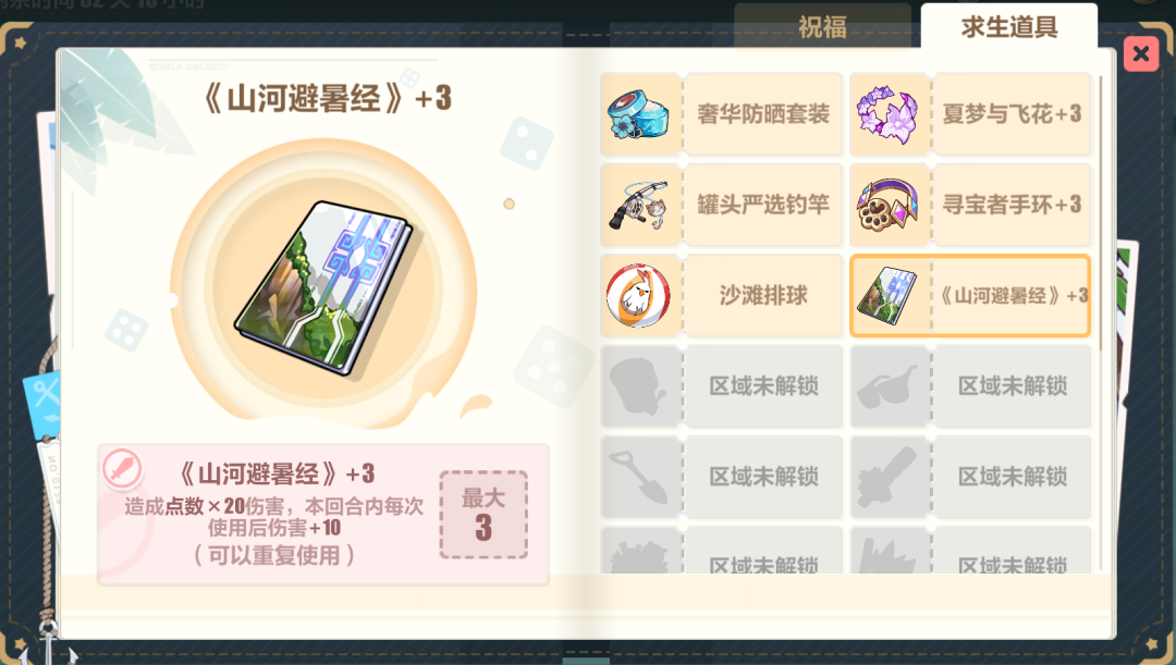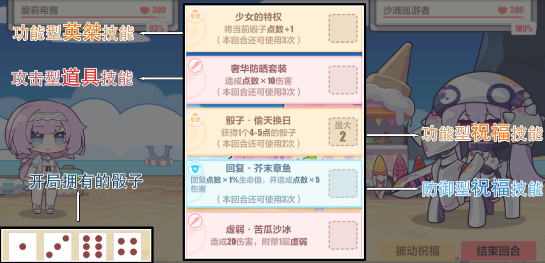 ②“热沙排球”的伤害要比专属道具高,可以按照最低可用的顺序去使用骰子。