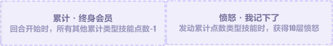 不同的技能在使用方式上也有差别,在技能的右侧方框内显示着技能的启动条件,如果是空白则为无条件,最小和最大意味着其限制了骰子的最小\最大点数;而累计18是需要在当前战斗中放入累计18点的骰子才可以触发,这种累计型的技能会在当前战斗中一直保存进度,直到被使用或者当前敌人死亡才会刷新。