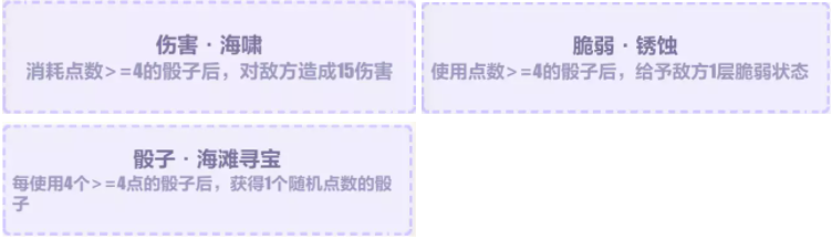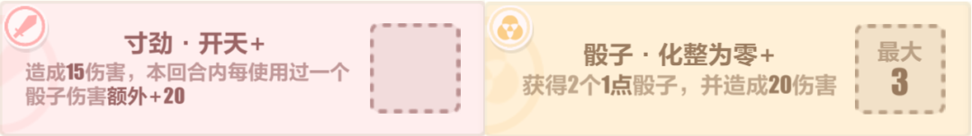③无使用条件的的技能可以留在后面,给小点数或者无法用在关键卡牌上的骰子去使用,过早用掉可能会导致手中骰子不能最大程度用出去。