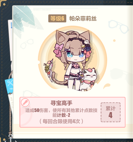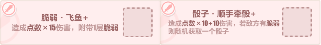 因为帕朵的专属道具是概率获得骰子,所以需要一张可以重复使用的、能造成伤害的技能卡,而与之搭配的则是获得更多骰子的技能卡。