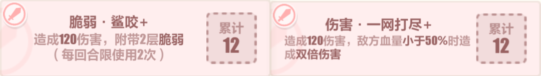 多多益善触发次数较少,不如核心技能,仅适合补强;“凉拌水母”可以在长流程战斗(爬塔)中提供不错的恢复能力。