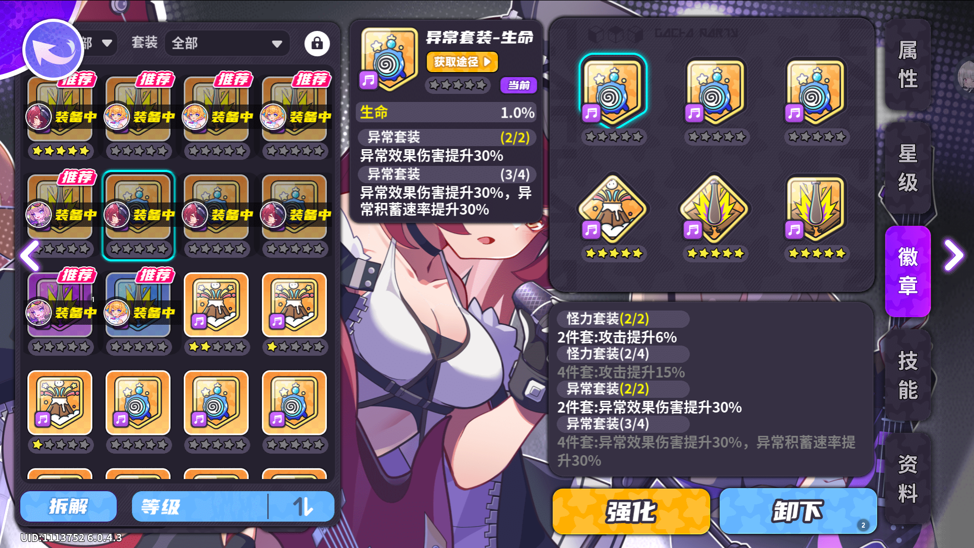 不使用官方推荐6异常累计原因:7月和群友测试6生命套装只能加成4套加成因此4+2是最优解,如果后面官方改版了,请纠正