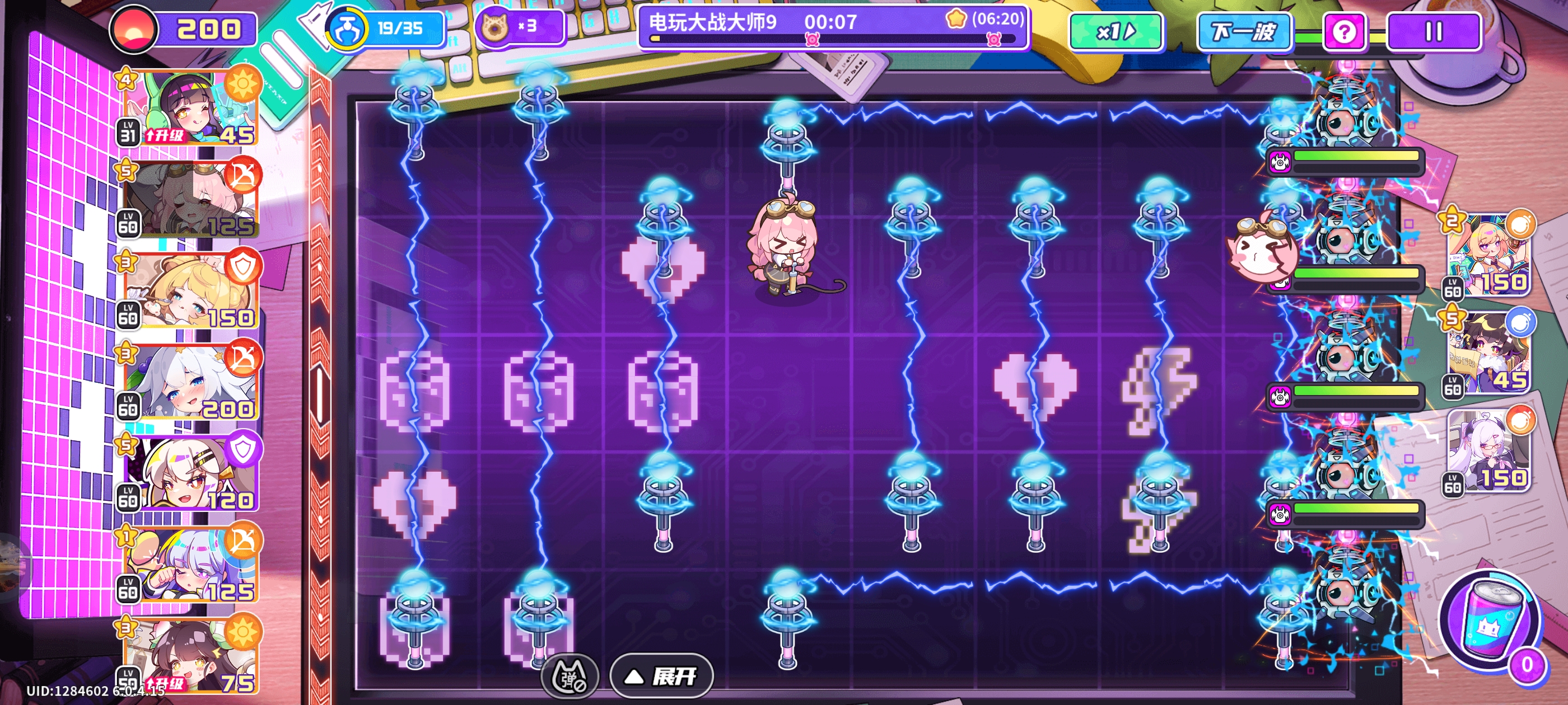 3.由于一次性角色除小熊和菜狗外,不会受到电网伤害,可以在后排存储一些用来救急