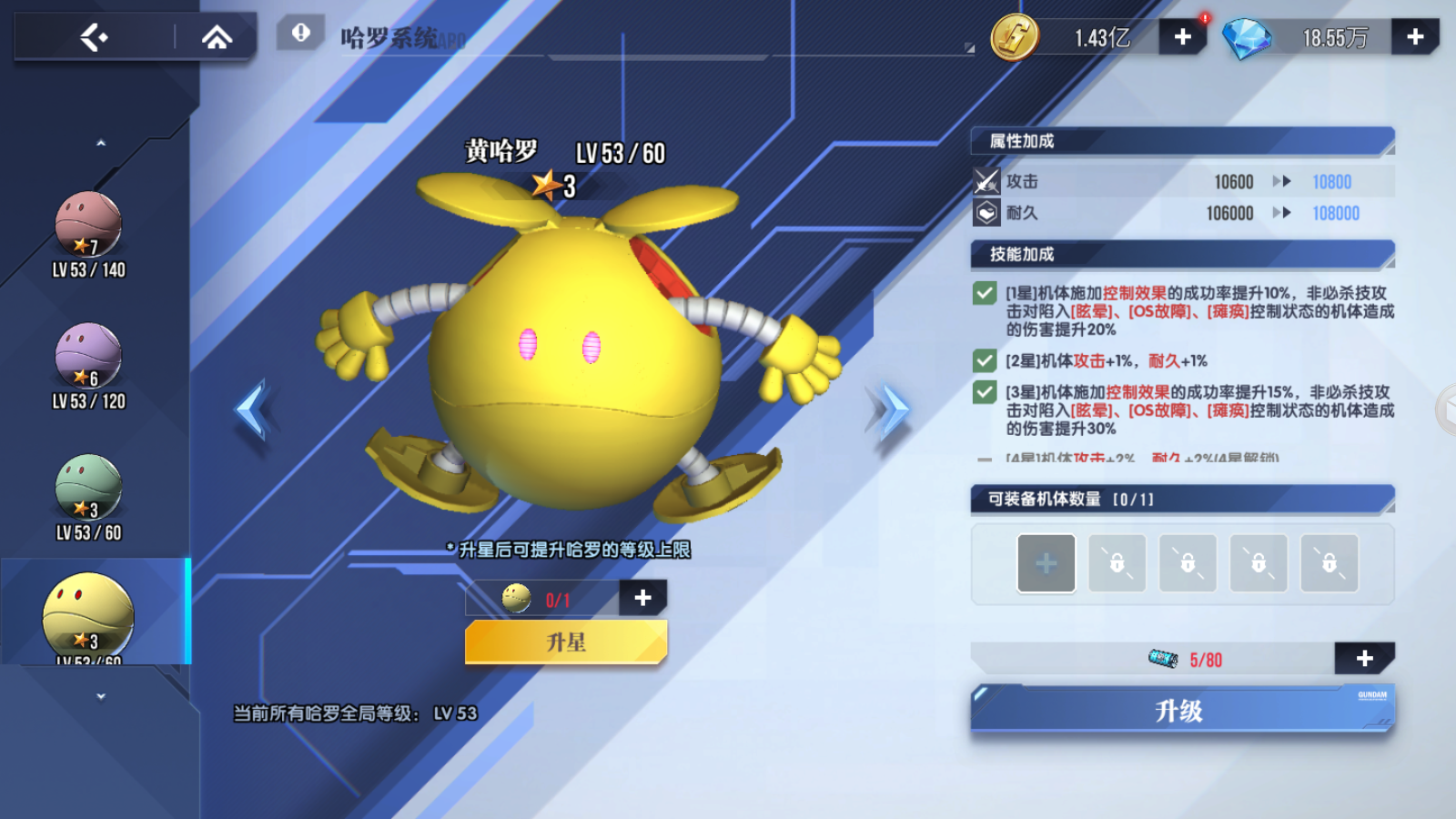 超级高达的【长距离光束步枪狙击】可以对敌方全体造成伤害,让距离最远的一台敌机陷入[眩晕]状态,虽然只能控制1名敌人,但此技能可以让其控制率提升高达80%,这意味着超级高达即使不配备黄哈罗依然能稳定控制敌人。