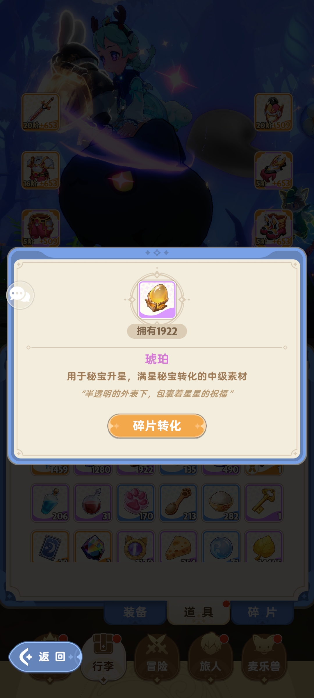 琥珀:史诗秘宝(紫)能够升五星后,多余的碎片转化的材料