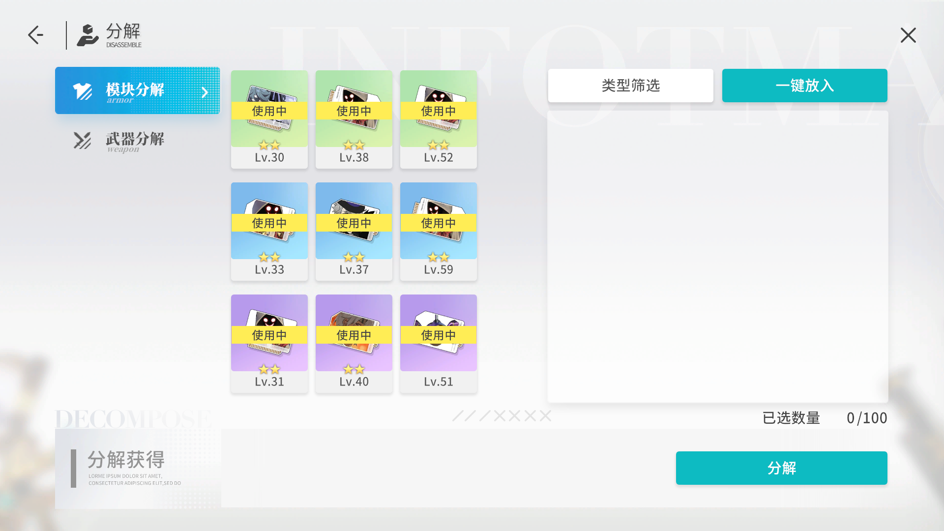 11.在主页点击分解,可以分解装备,目前的话,只要留下在用角色的装备,防具留下攻击力加成的就行了。因为账号35级之后,可以解锁79级装备,目前的装备都是过渡,都分解掉就好了