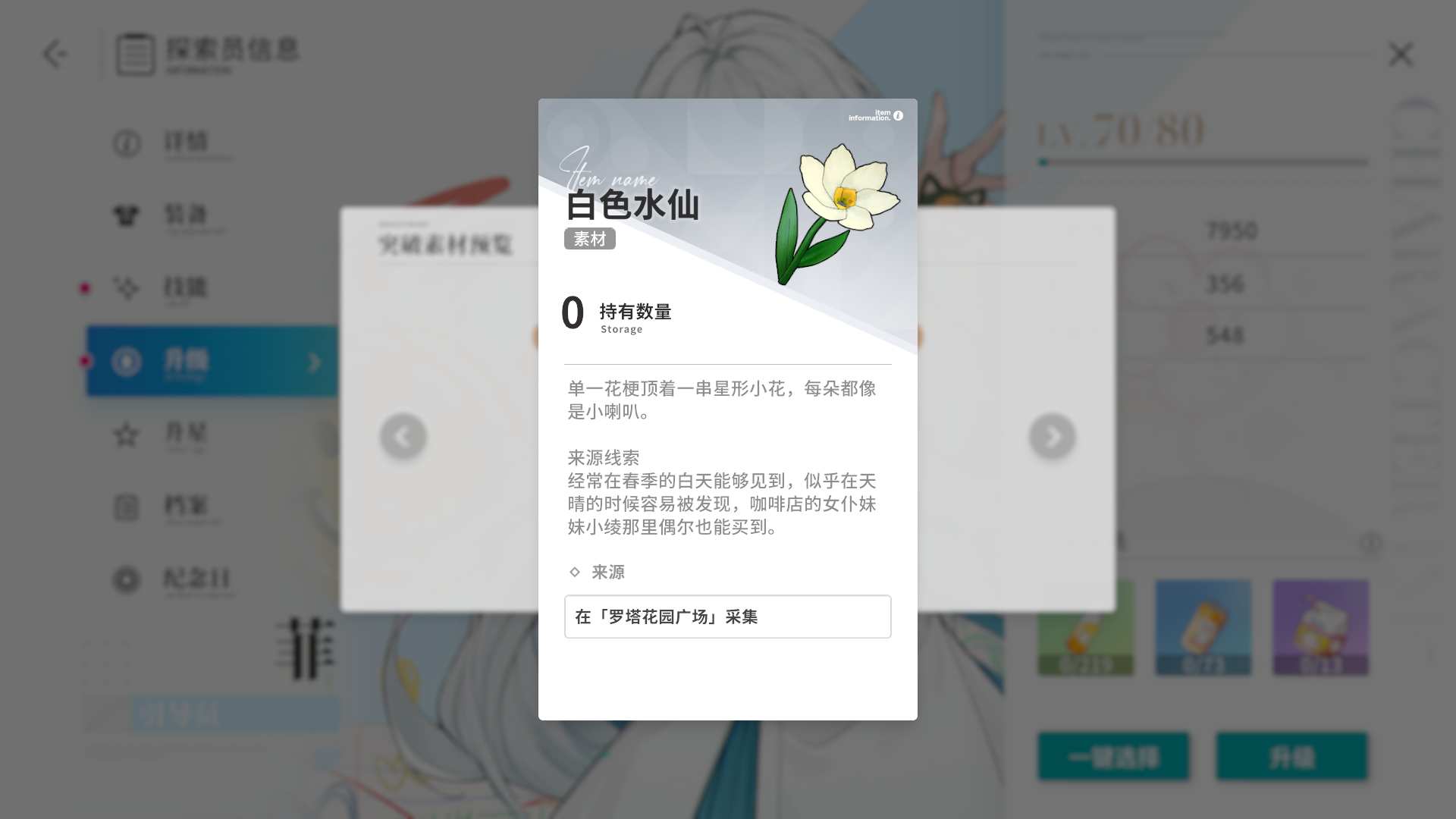 2.角色升级界面,图示位置点击,可以查看角色后续所有突破材料