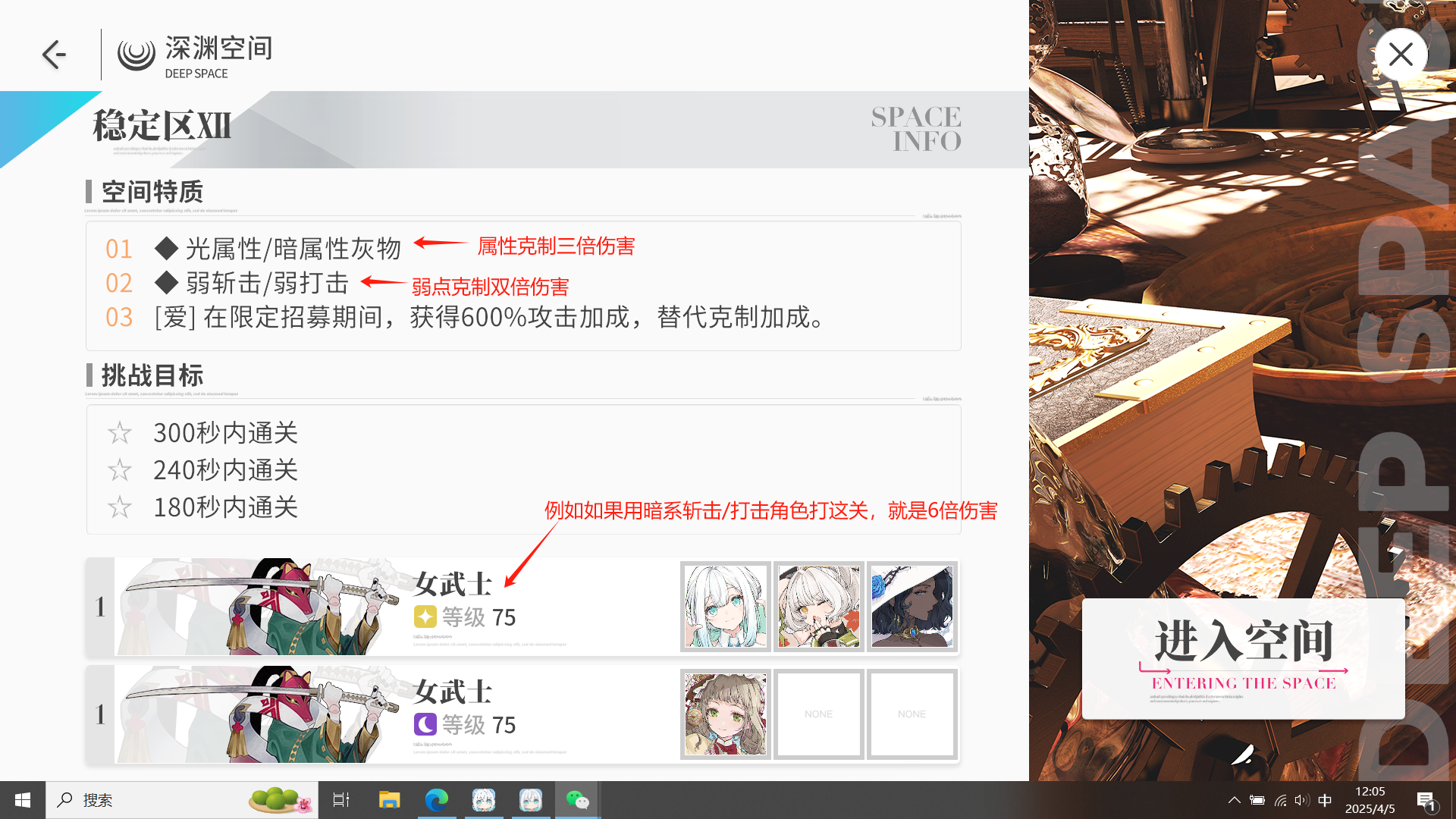 6.深渊环境如图所示,利用好属性克制和弱点克制,通关事半功倍