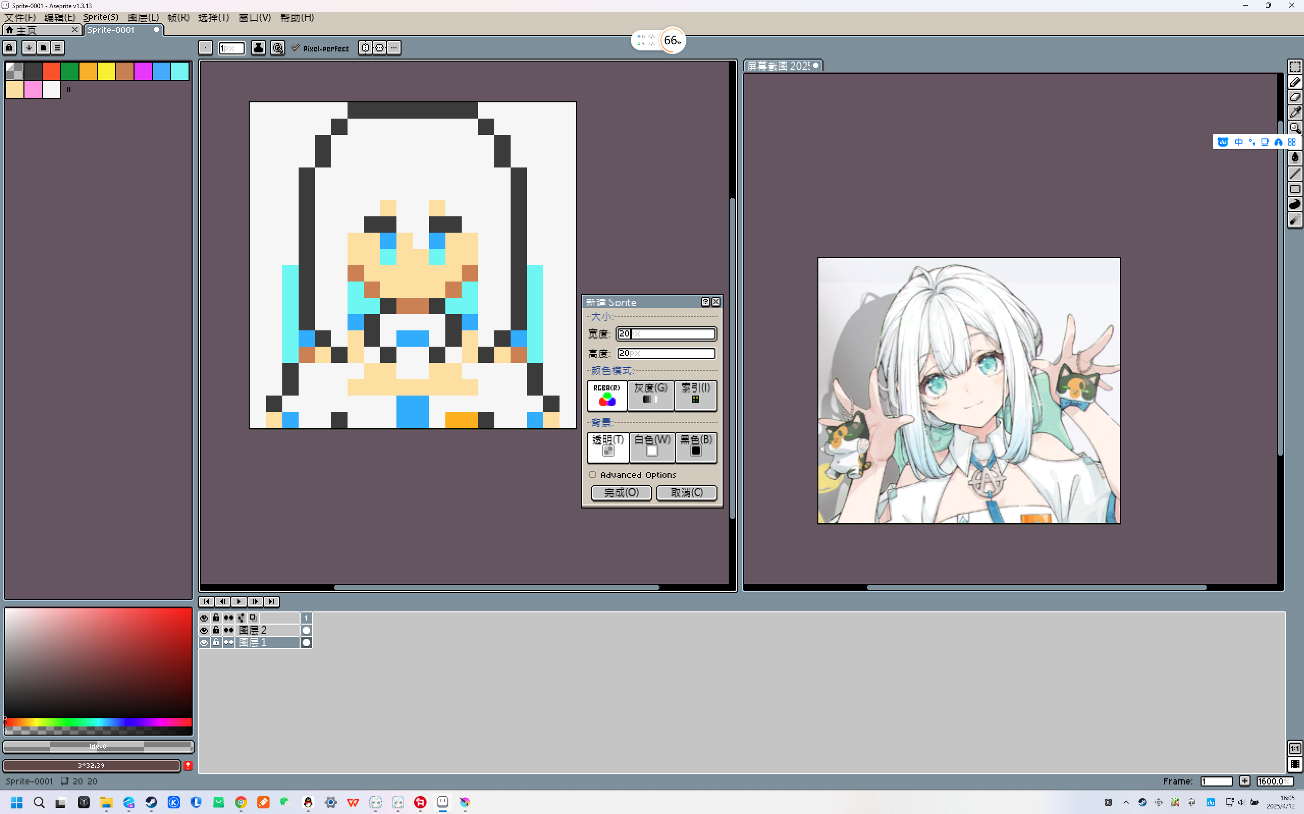 建完画布就可以自己画像素画了!为自己在频道里的像素画画一个参考了!!!!