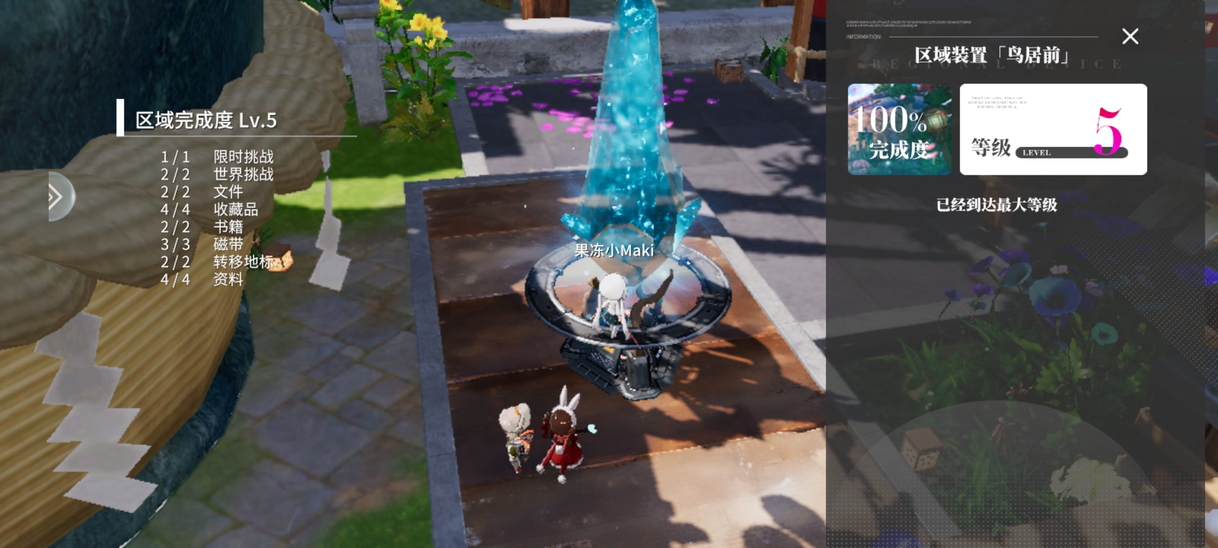 这里我们可以看到每个装置都有任务,等级,包括搜集各种物品,挑战,和传送点