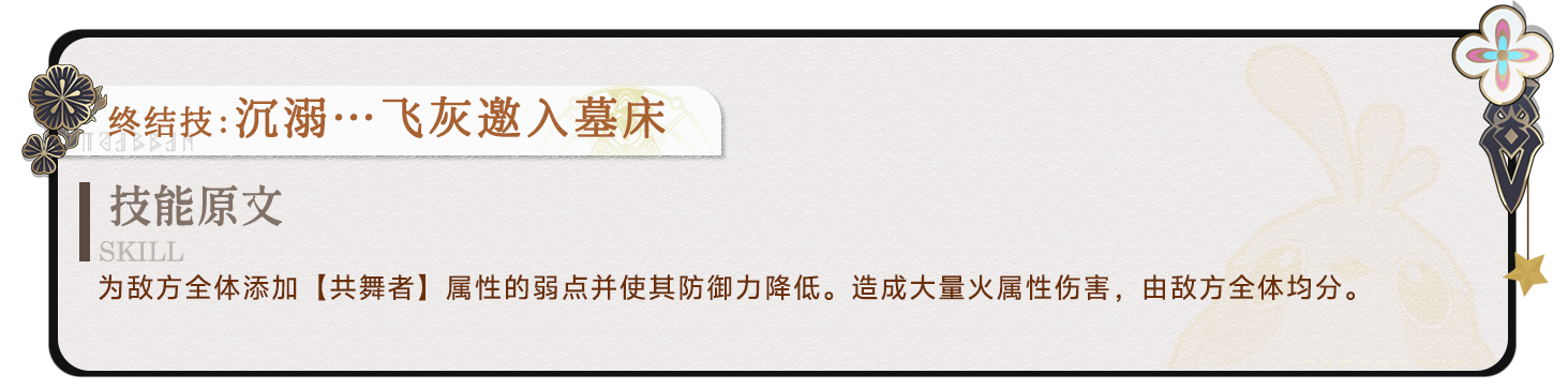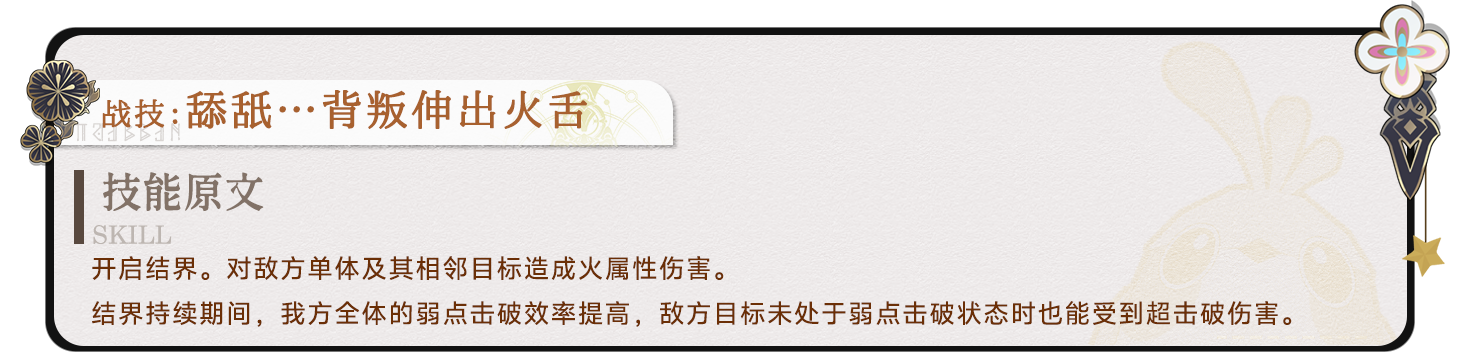 ③为全队提供一定的击破效率加成并降低敌方全体防御;