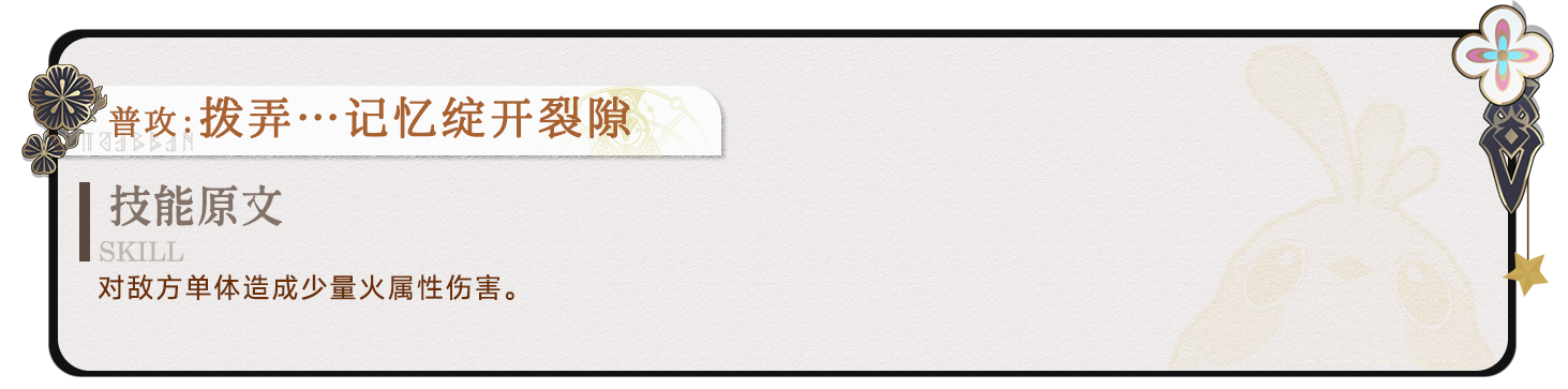 【解析】大丽花的贯用输出手段之一,可以通用施放该技能攻击敌人,造成少量火属性韧性削减效果并转化成对应的超击破伤害,并拥有产出战技点与提供能量恢复效果的作用。