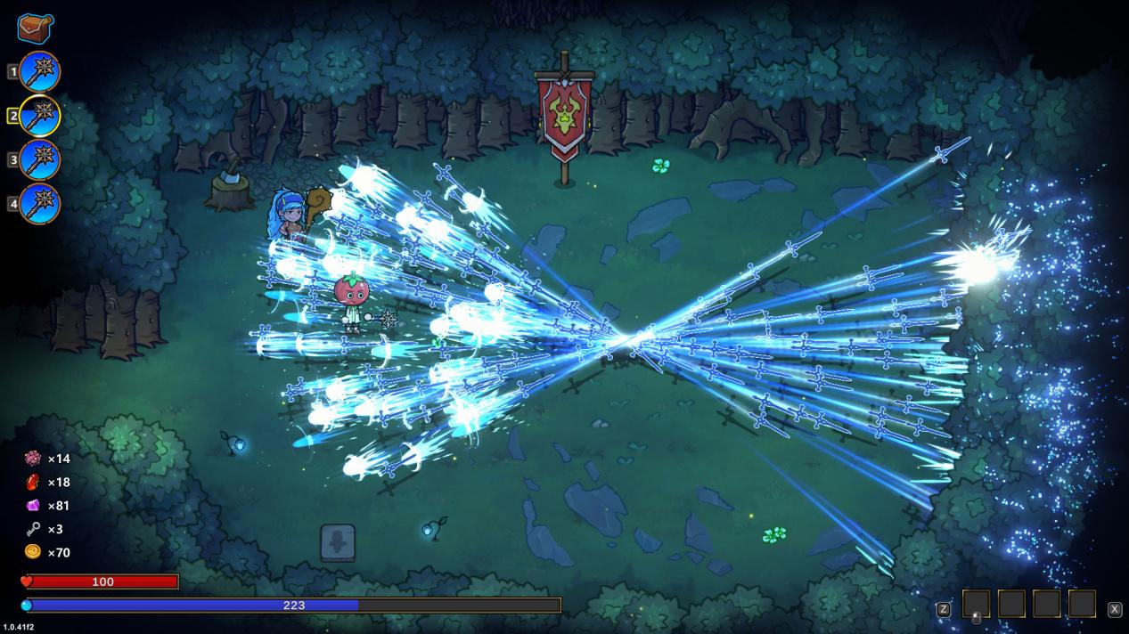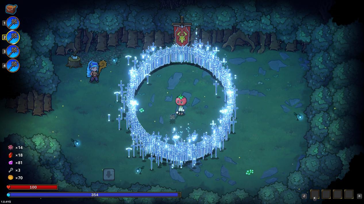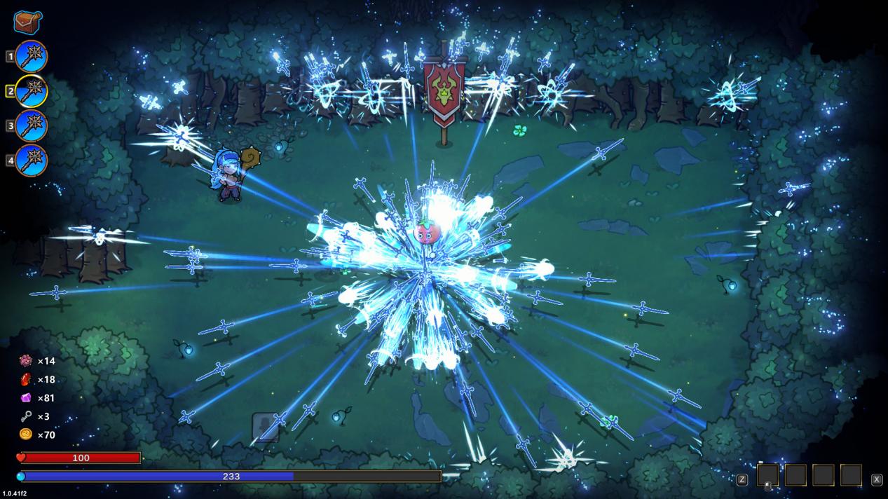 「寻踪」形式的攻击会更可控些,不需要靠近敌人,就可以直接把魔法剑射出,主打就是一个指哪打哪,火力覆盖。所有魔法剑的攻击会集中在鼠标的点,然后再散射开(类似光经过小孔)。